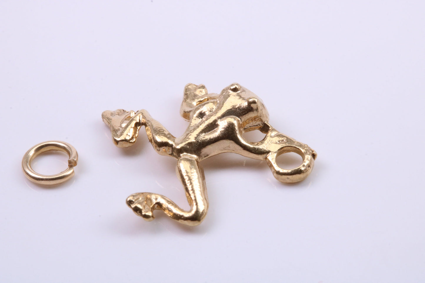 Frog Charm, Traditional Charm, Made from Solid 9ct Yellow Gold, British Hallmarked, Complete with Attachment Link