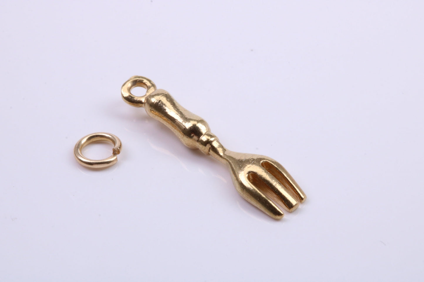 Garden Fork Charm, Traditional Charm, Made from Solid 9ct Yellow Gold, British Hallmarked, Complete with Attachment Link