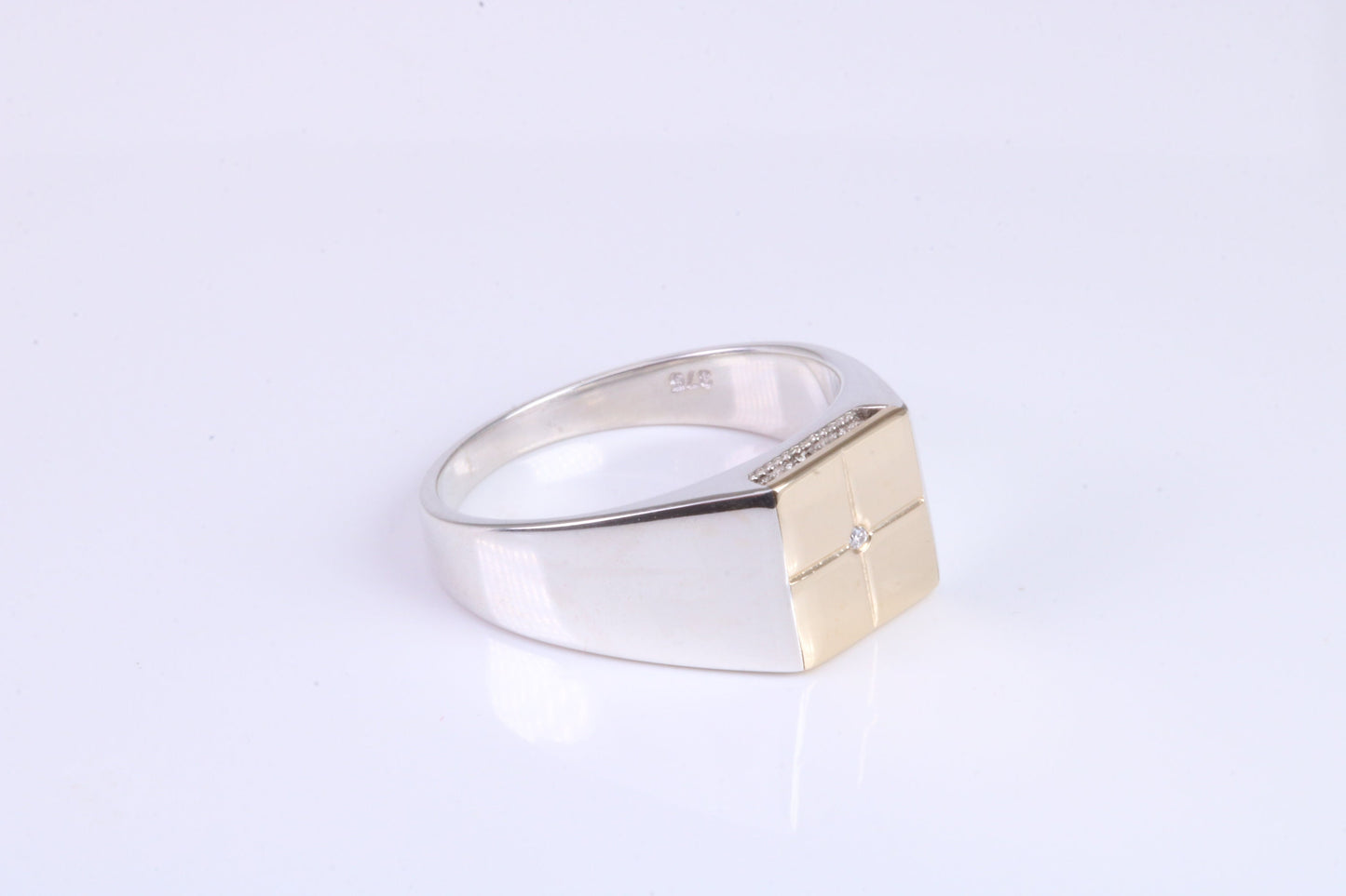 Gents Diamond set Signet Ring, Made from Yellow Gold and Silver, British Hallmarked