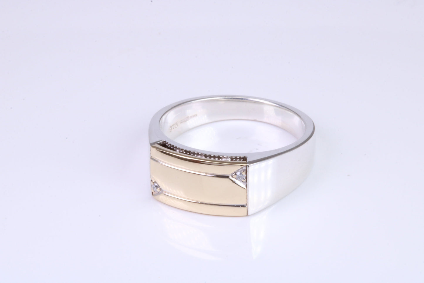 Gents Diamond set Signet Ring, Made from Yellow Gold and Silver, British Hallmarked