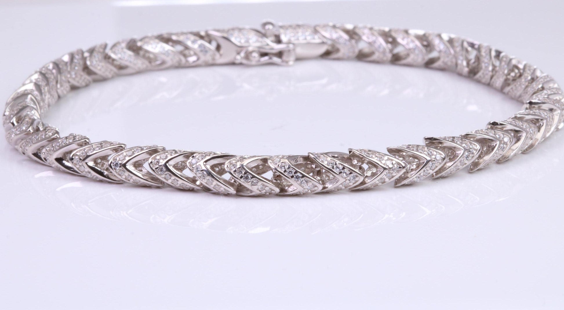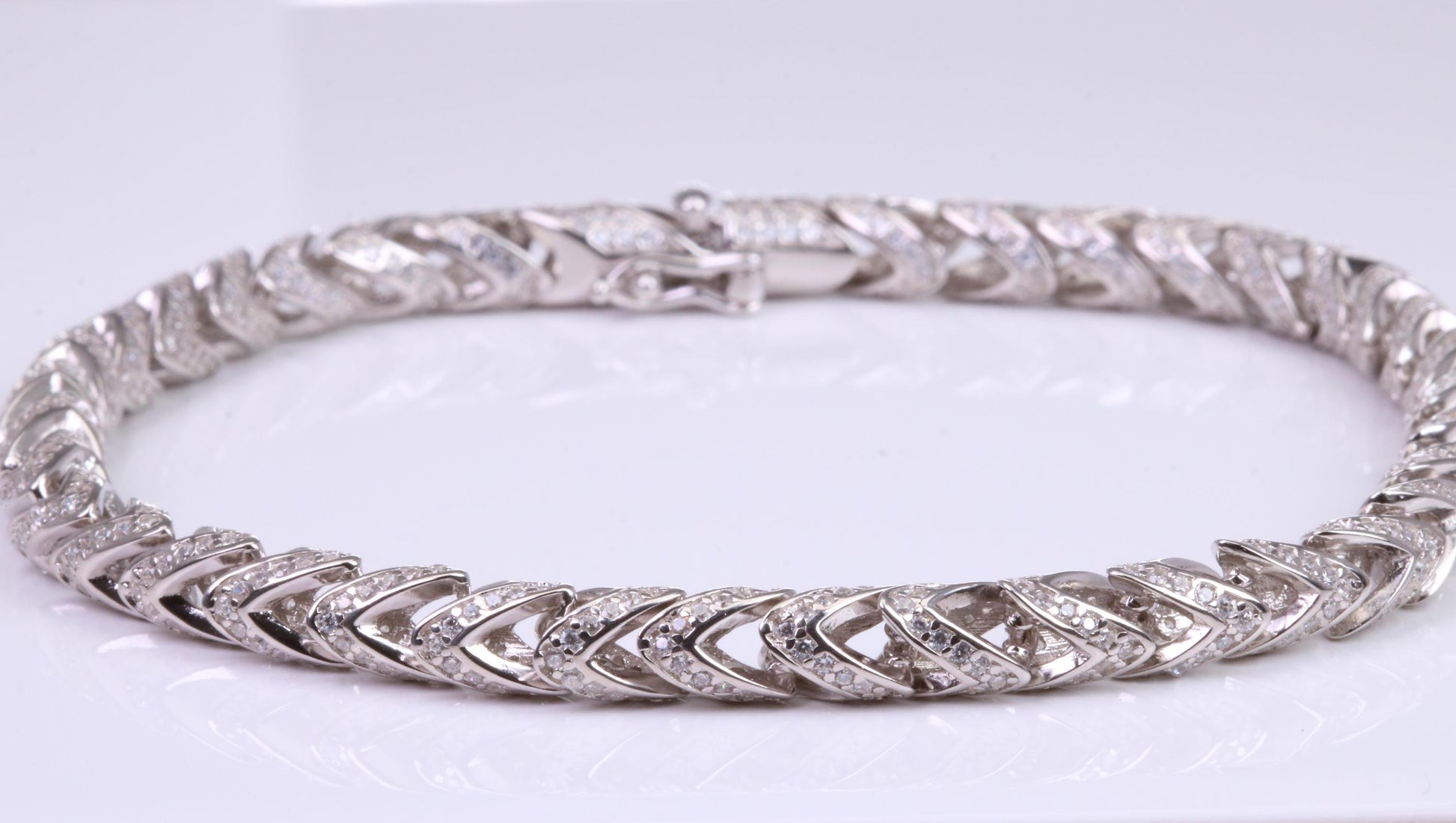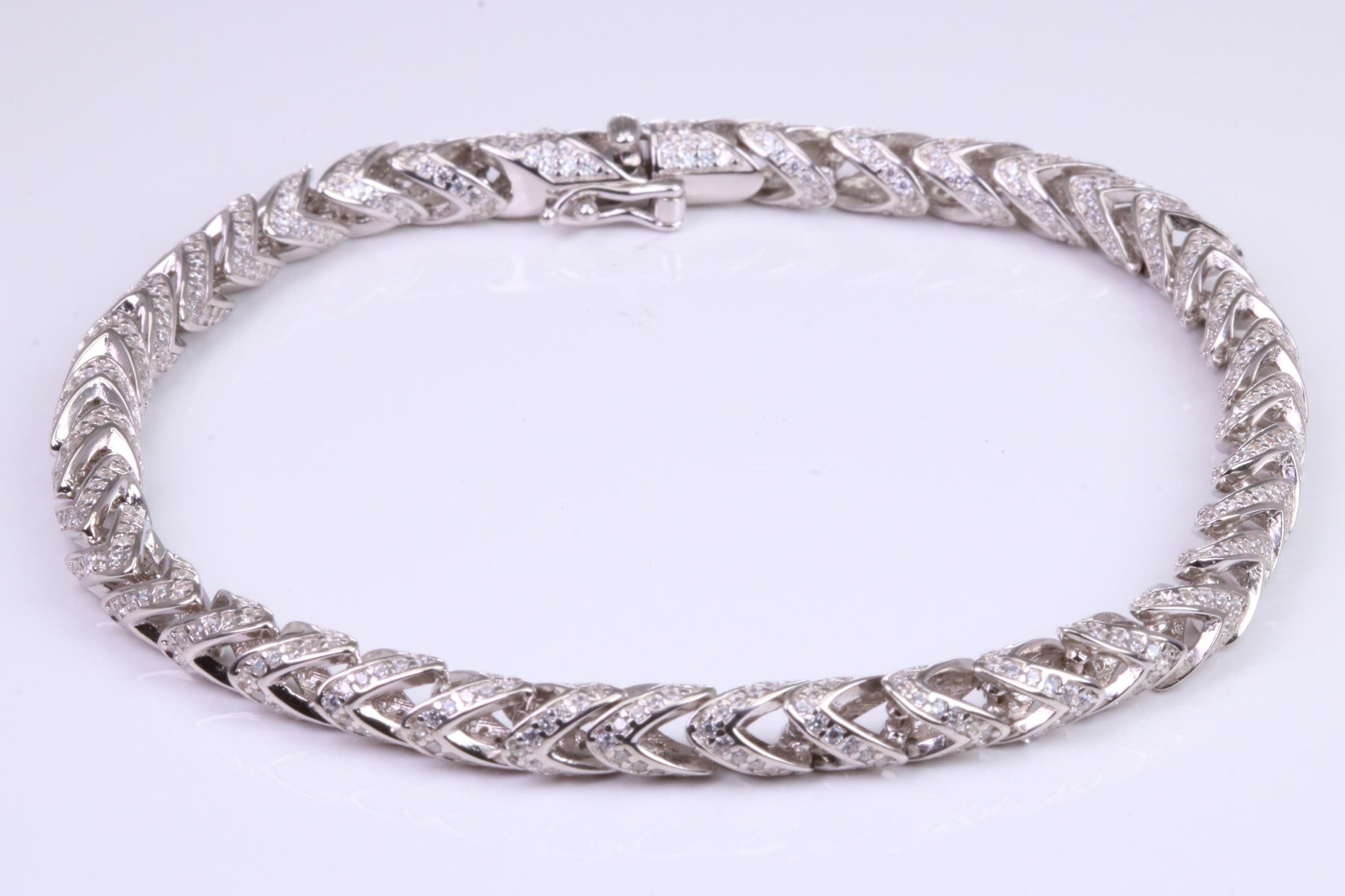 Gents Round Open Link Cubic Zirconia set Bracelet, Made from solid Sterling Silver, 8.50 Inches Long and 5 mm Wide