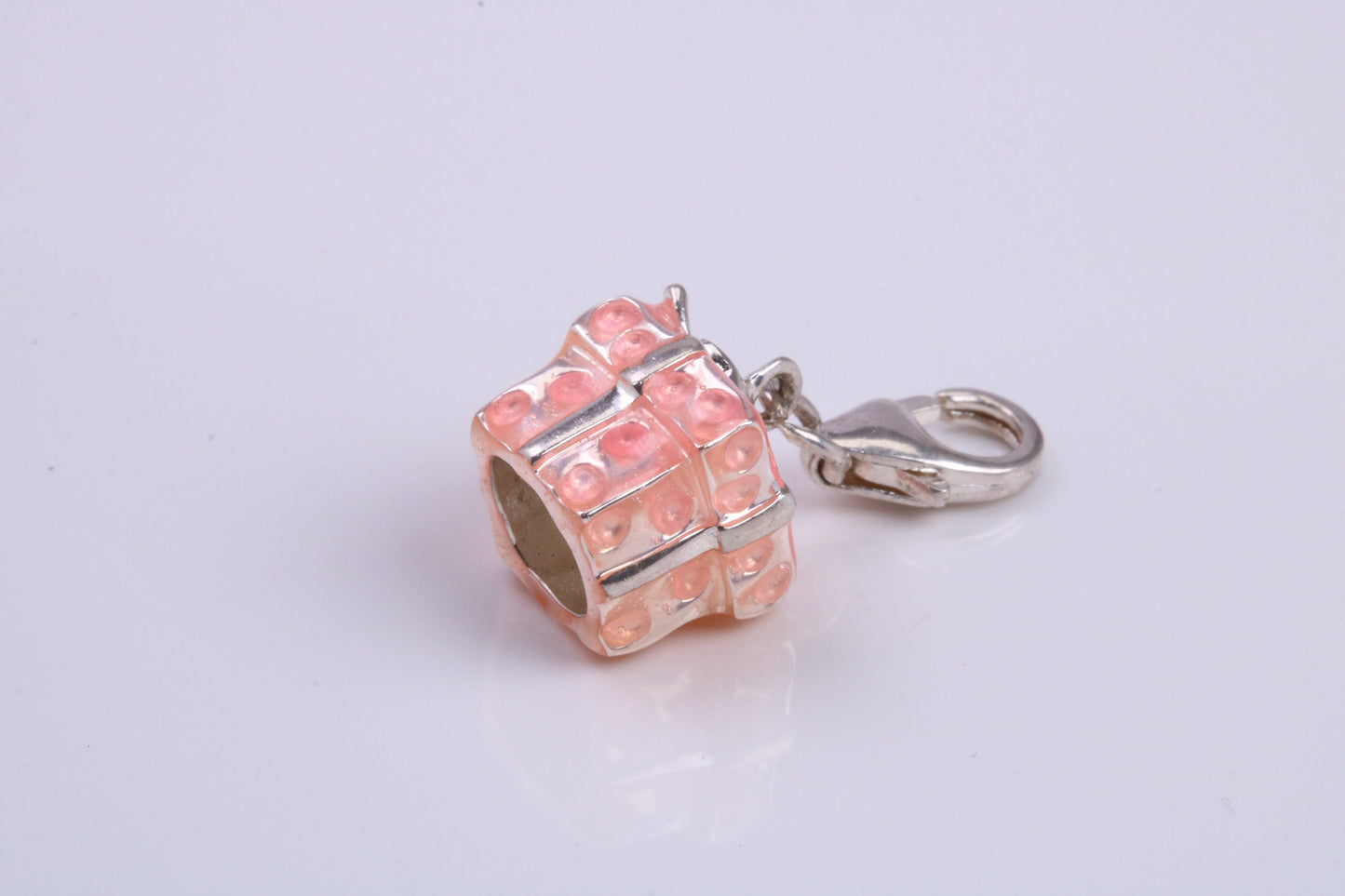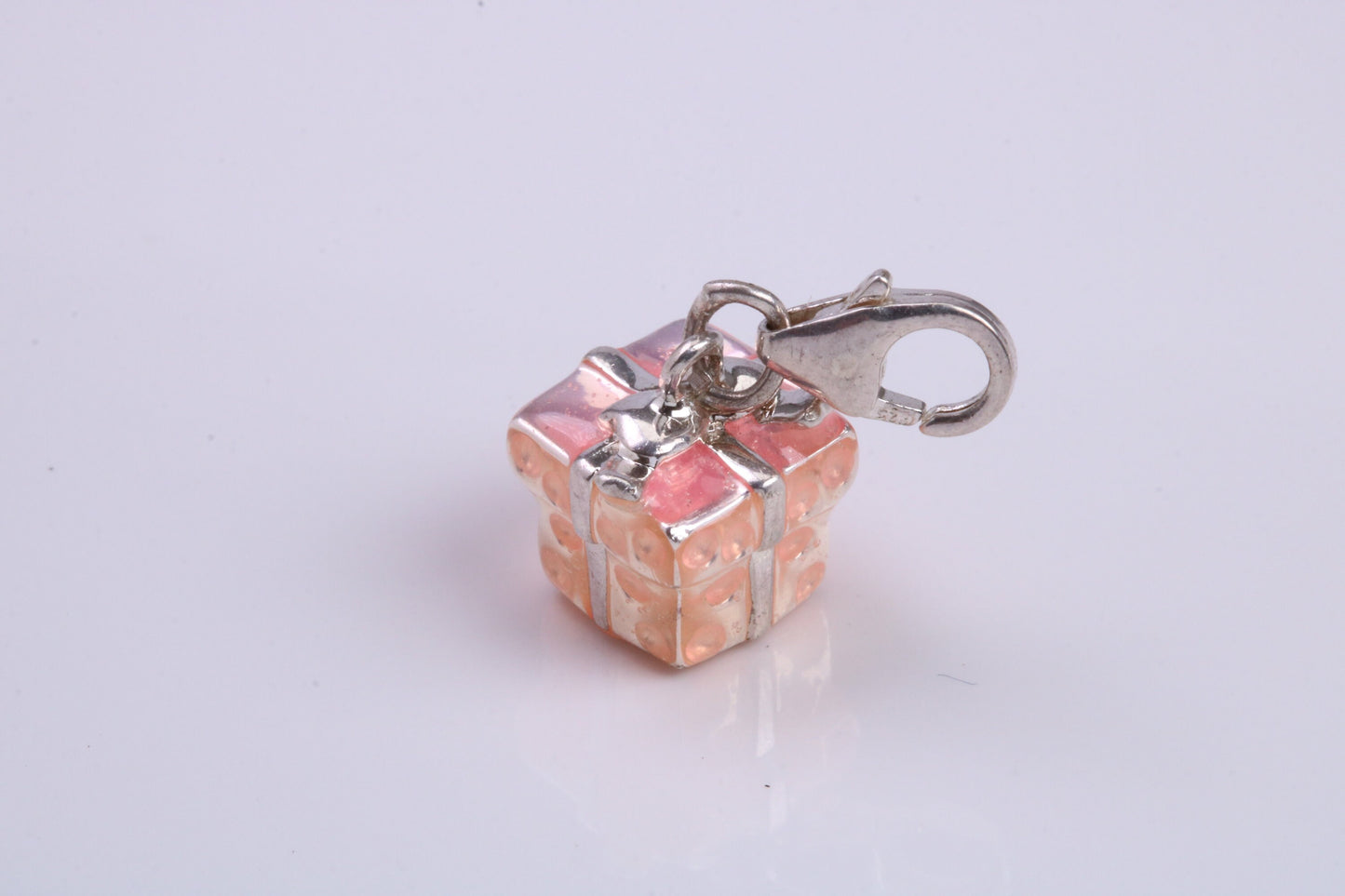 Gift Box Charm, Traditional Charm, Made from Solid 925 Grade Sterling Silver, Complete with Attachment Link