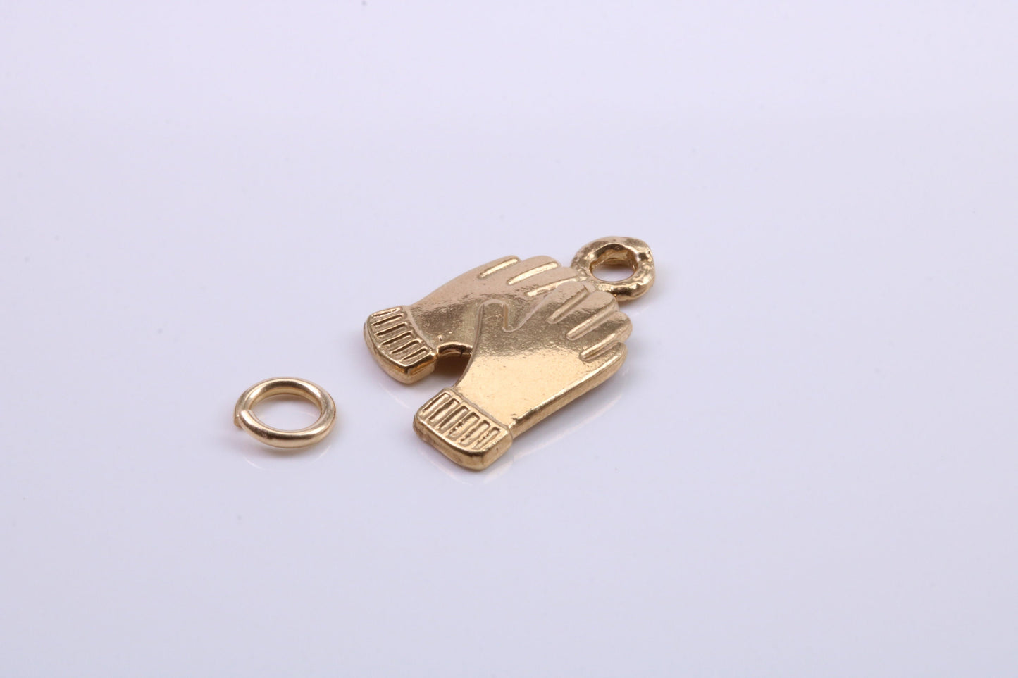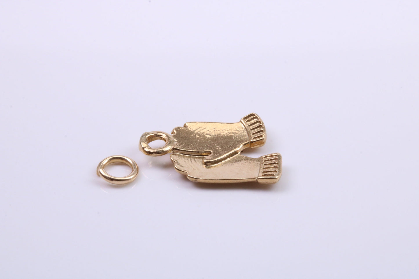 Gloves Charm, Traditional Charm, Made from Solid 9ct Yellow Gold, British Hallmarked, Complete with Attachment Link