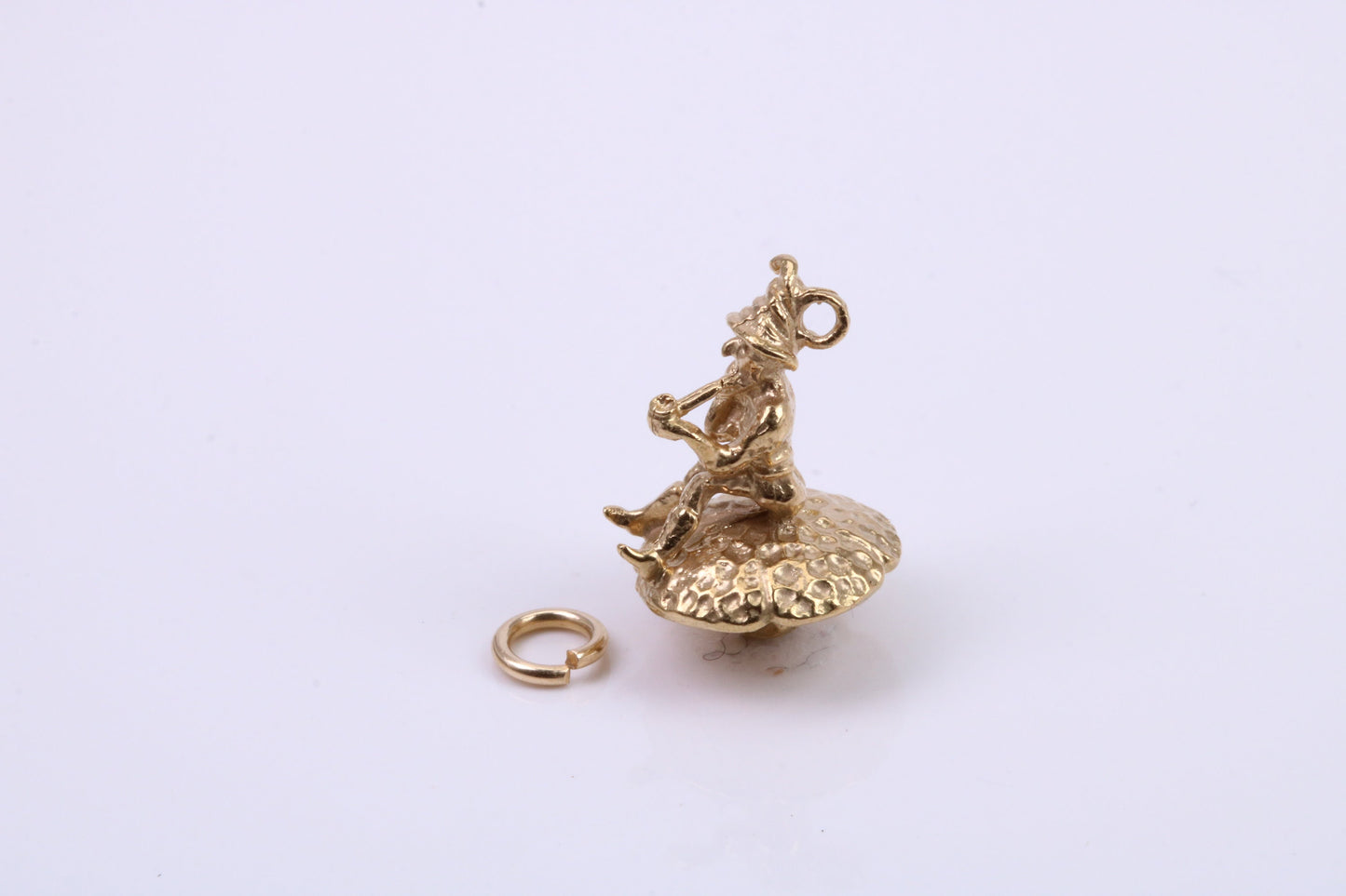 Gnome on Toadstool Charm, Traditional Charm, Made from Solid 9ct Yellow Gold, British Hallmarked, Complete with Attachment Link