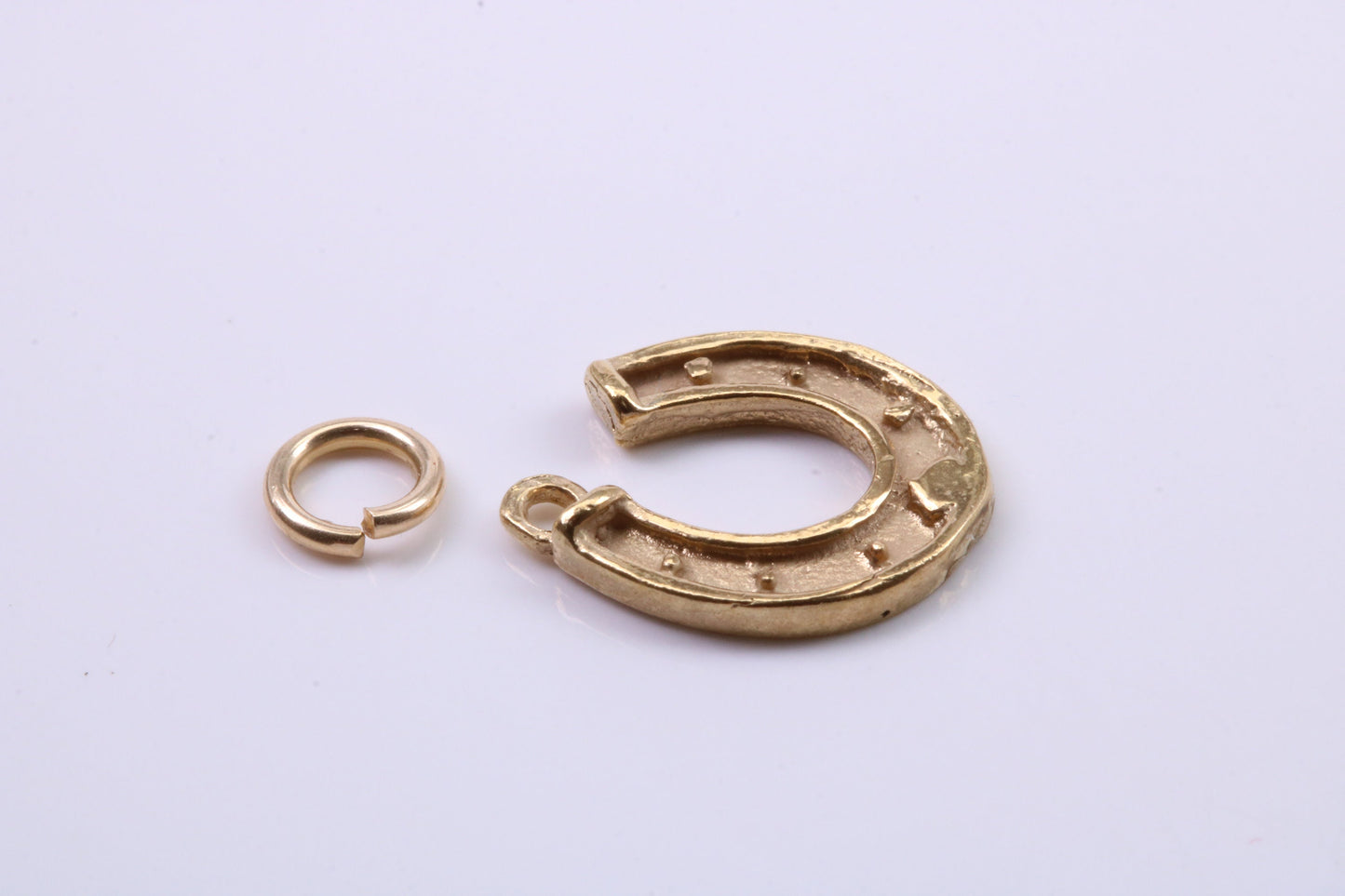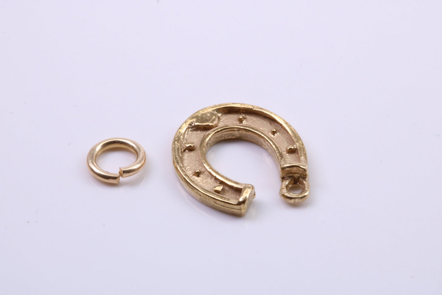 Good Luck Horse Shoe Charm, Traditional Charm, Made from Solid 9ct Yellow Gold, British Hallmarked, Complete with Attachment Link