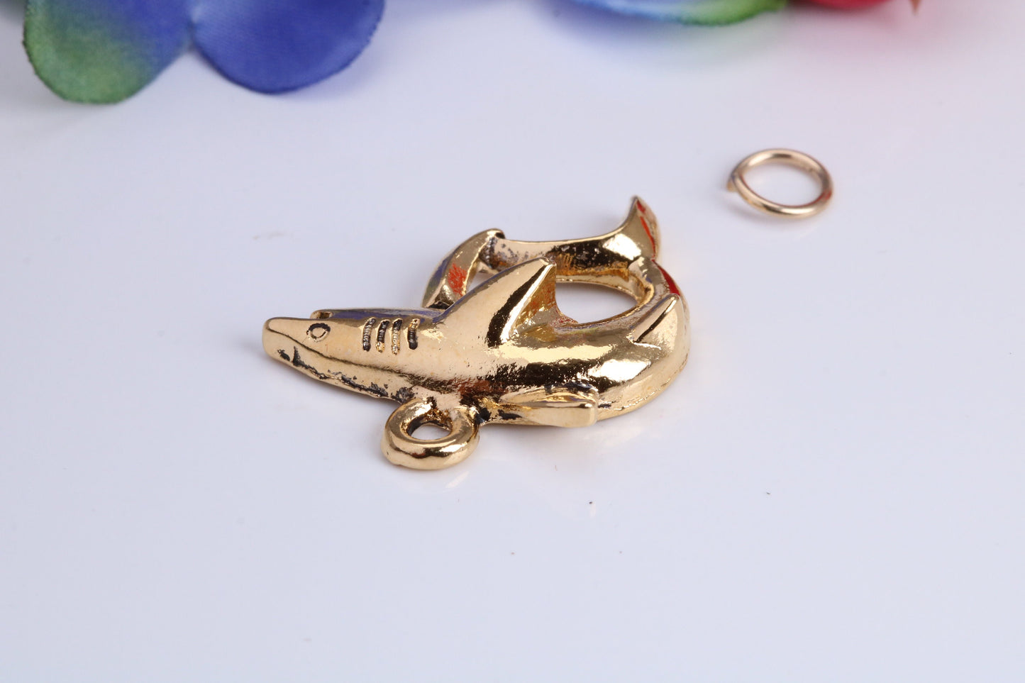 Great White Shark Charm, Traditional Charm, Made from Solid Cast Yellow Gold, British Hallmarked