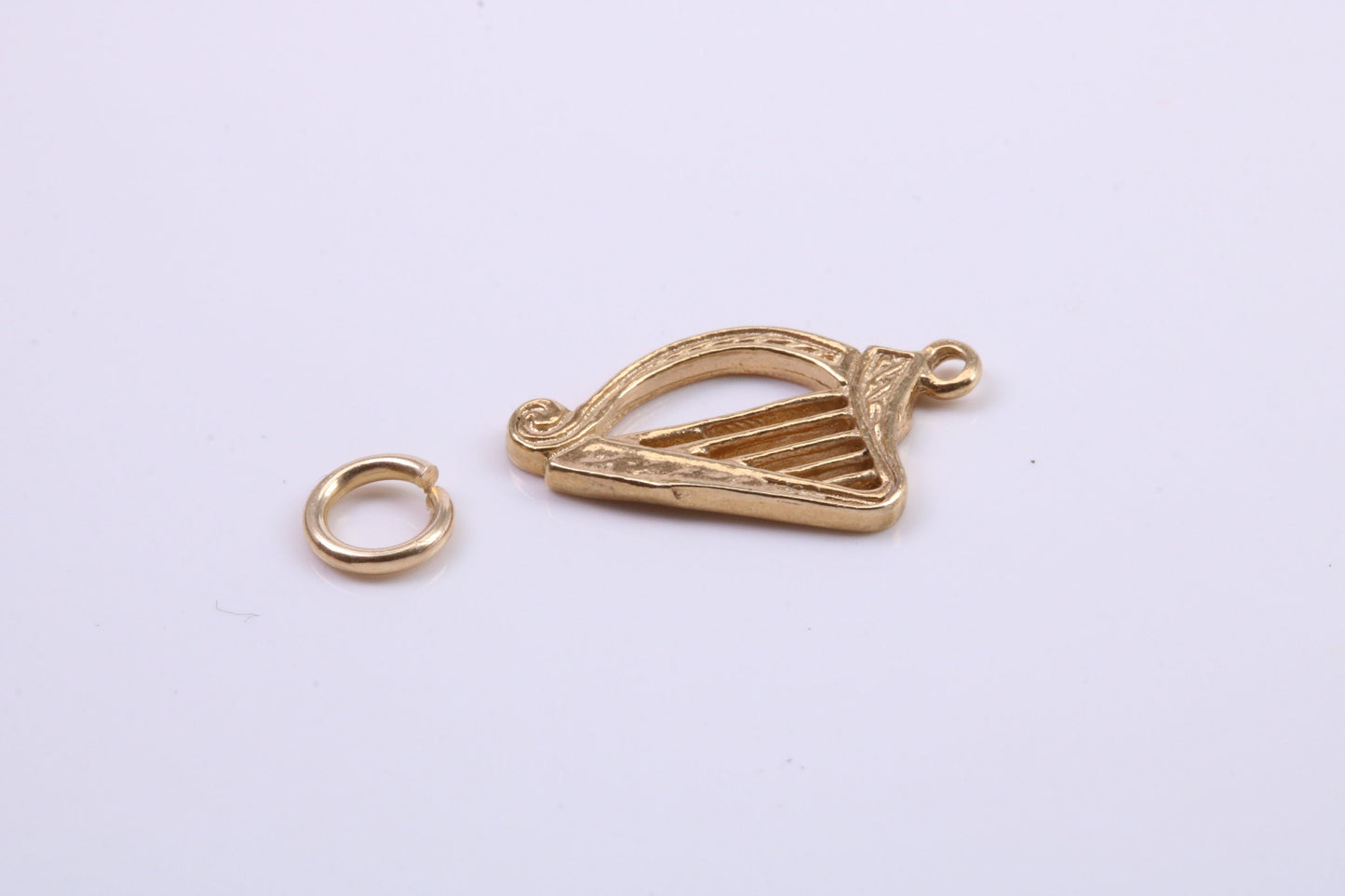 Harp Charm, Traditional Charm, Made from Solid 9ct Yellow Gold, British Hallmarked, Complete with Attachment Link