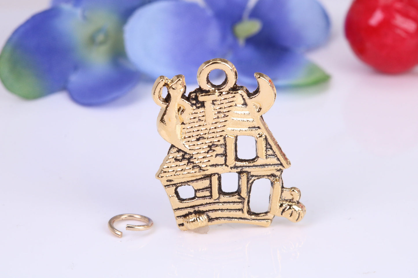 Haunted House Charm, Traditional Charm, Made from Solid Cast Yellow Gold, British Hallmarked