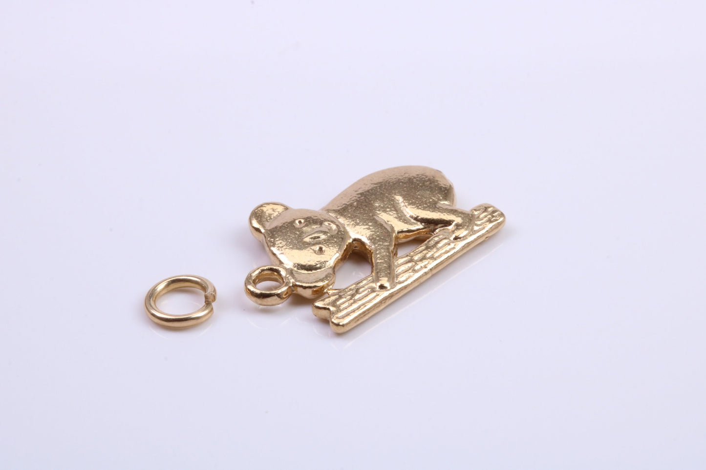 Koala Bear Charm, Traditional Charm, Made from Solid 9ct Yellow Gold, British Hallmarked, Complete with Attachment Link