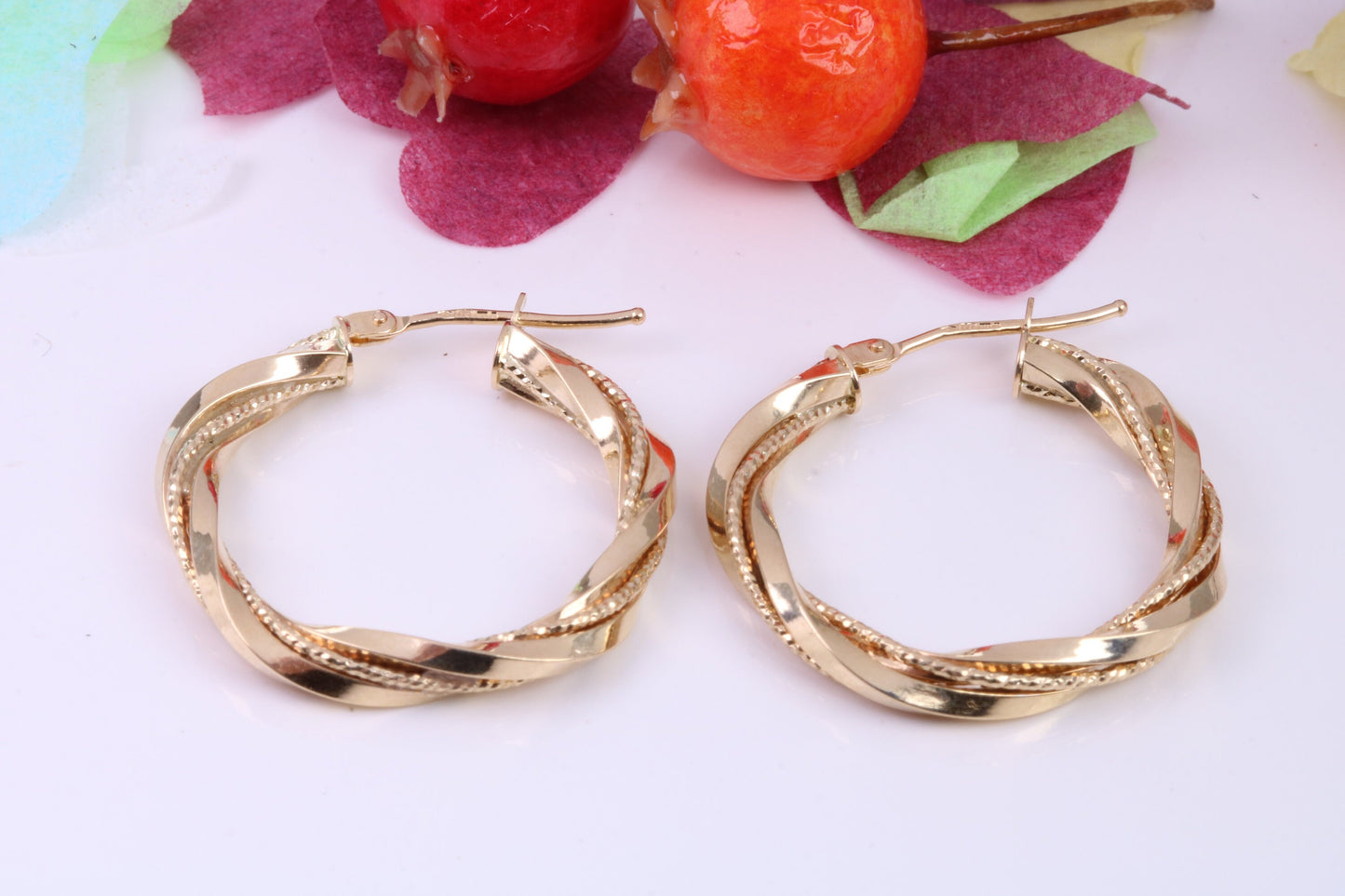Large 25 mm Round Hoop Creole Earrings Made from Solid 9ct Yellow Gold, British Hallmarked
