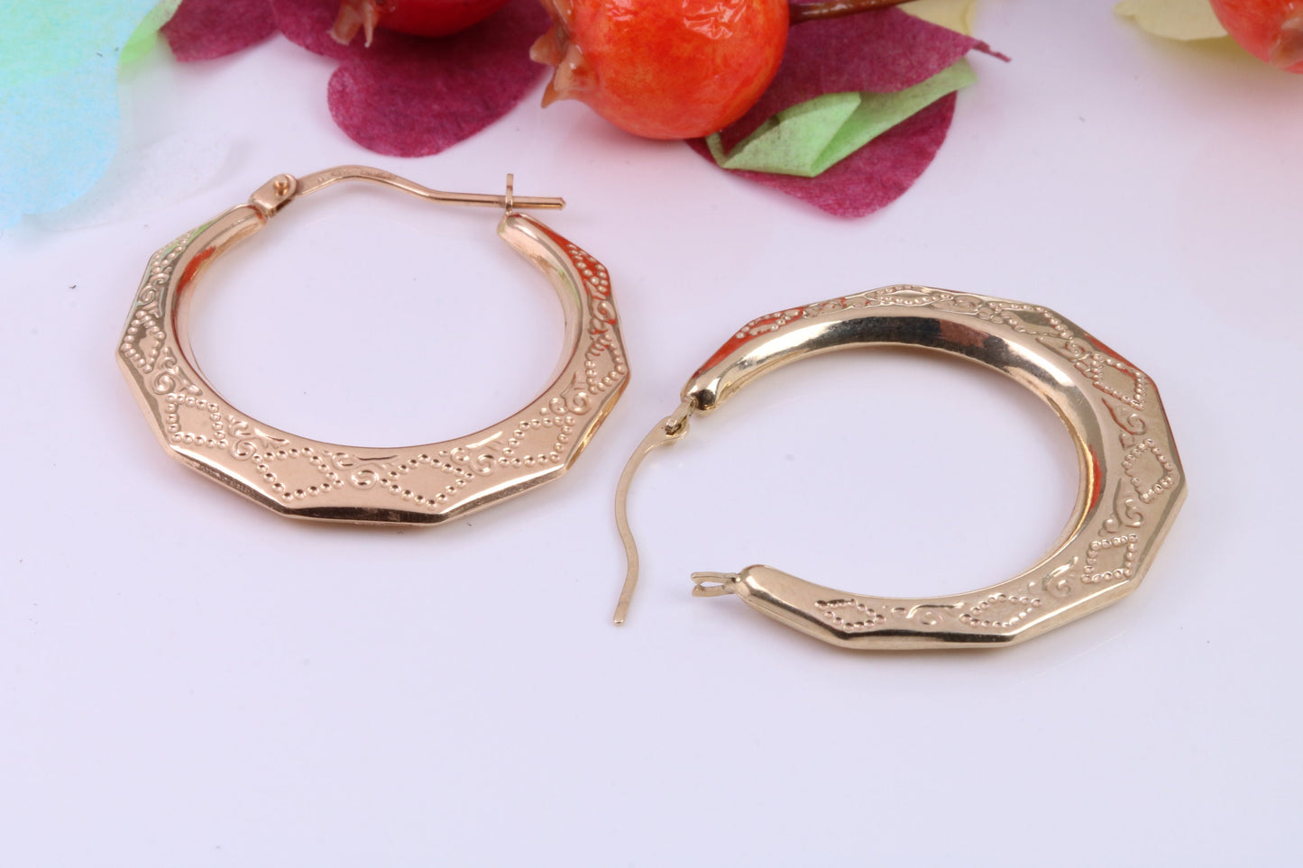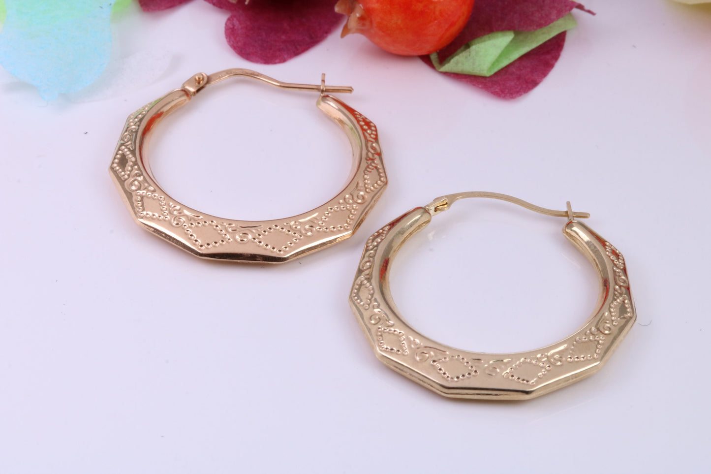 Large 28 mm Round Hoop Creole Earrings Made from Solid 9ct Yellow Gold, British Hallmarked