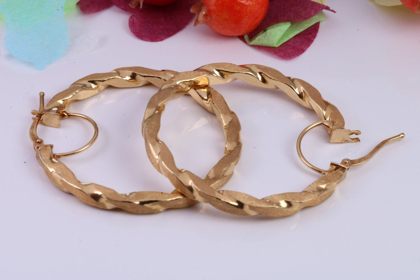 Large 38 mm Round Hoop Creole Earrings Made from Solid 9ct Yellow Gold, British Hallmarked