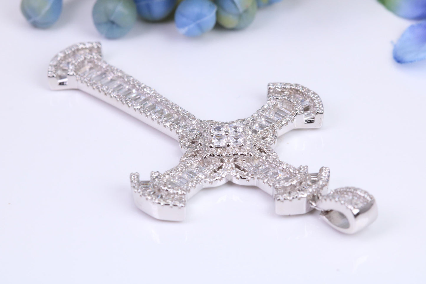 Large 57 mm Long Cubic Zirconia set Cross Necklace, made from solid Sterling Silver