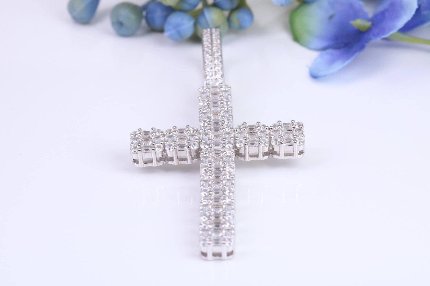 Large 65 mm Long Cubic Zirconia set Cross Necklace, made from solid Sterling Silver