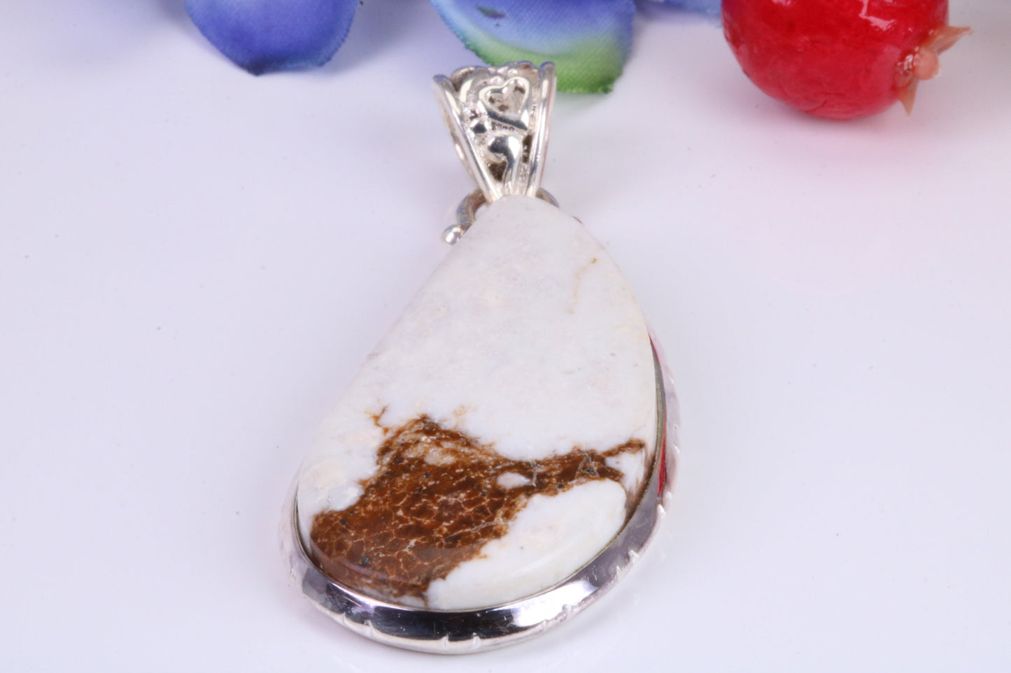 Large White Wild Horse Magnesite Pendant set in Sterling Silver
