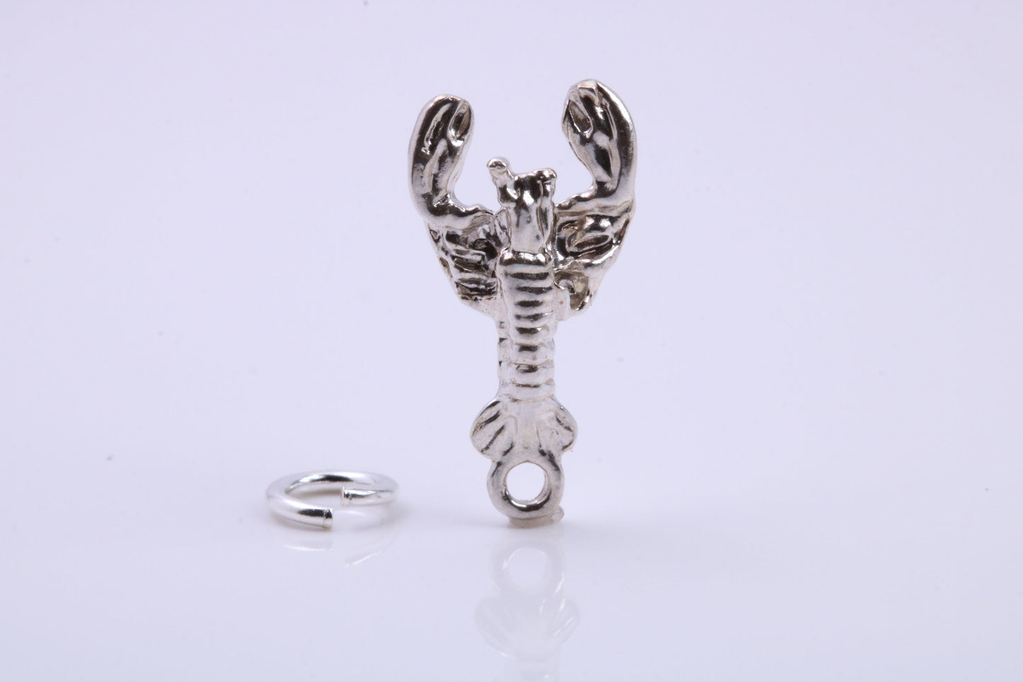 Lobster Charm, Traditional Charm, Made from Solid 925 Grade Sterling Silver, Complete with Attachment Link