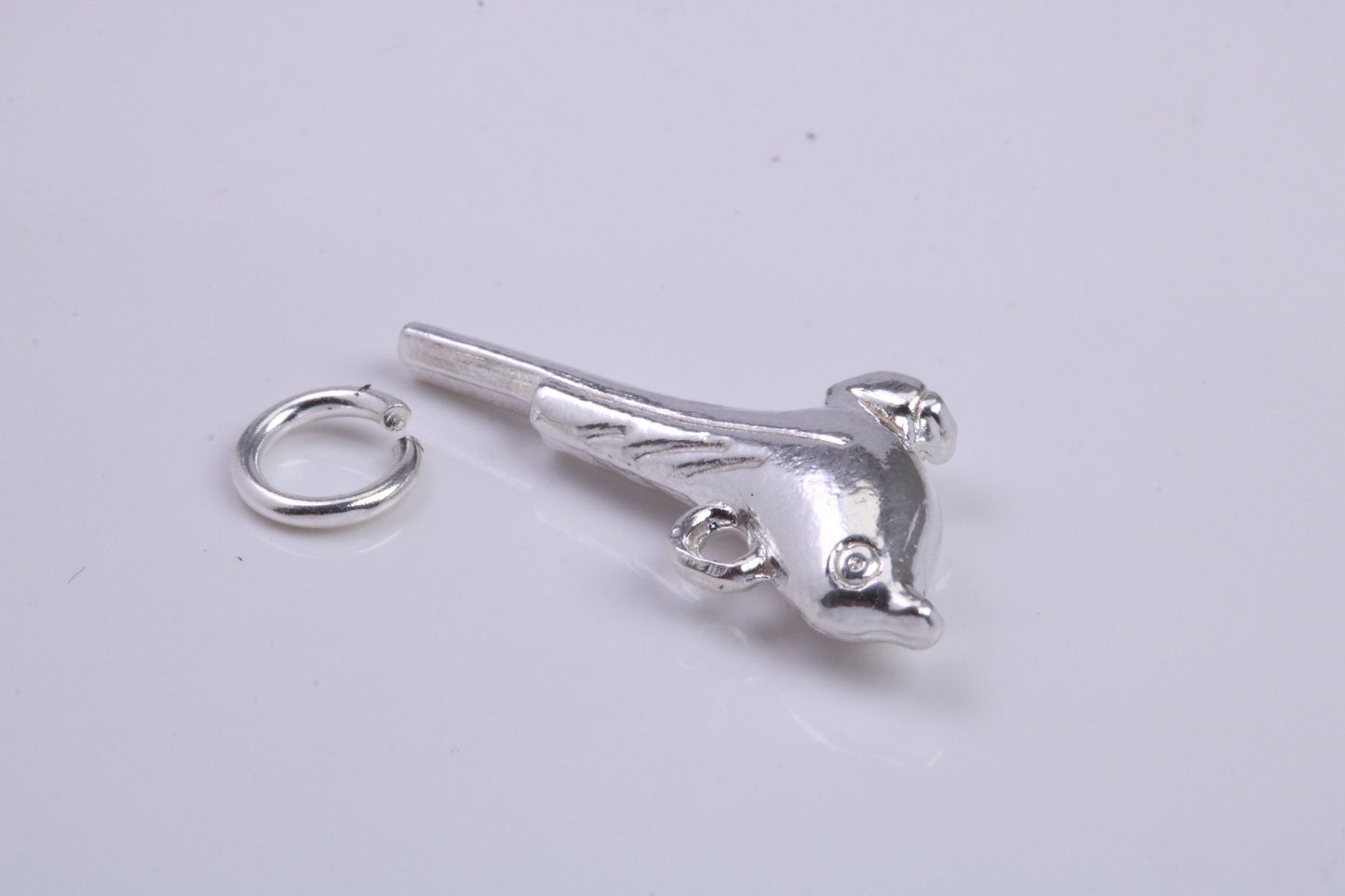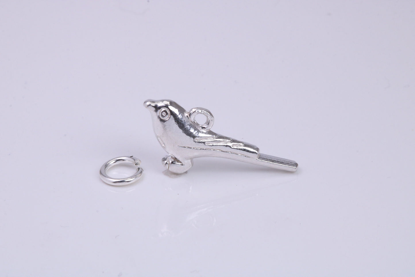 Long Tailed Bird Charm, Traditional Charm, Made from Solid 925 Grade Sterling Silver, Complete with Attachment Link