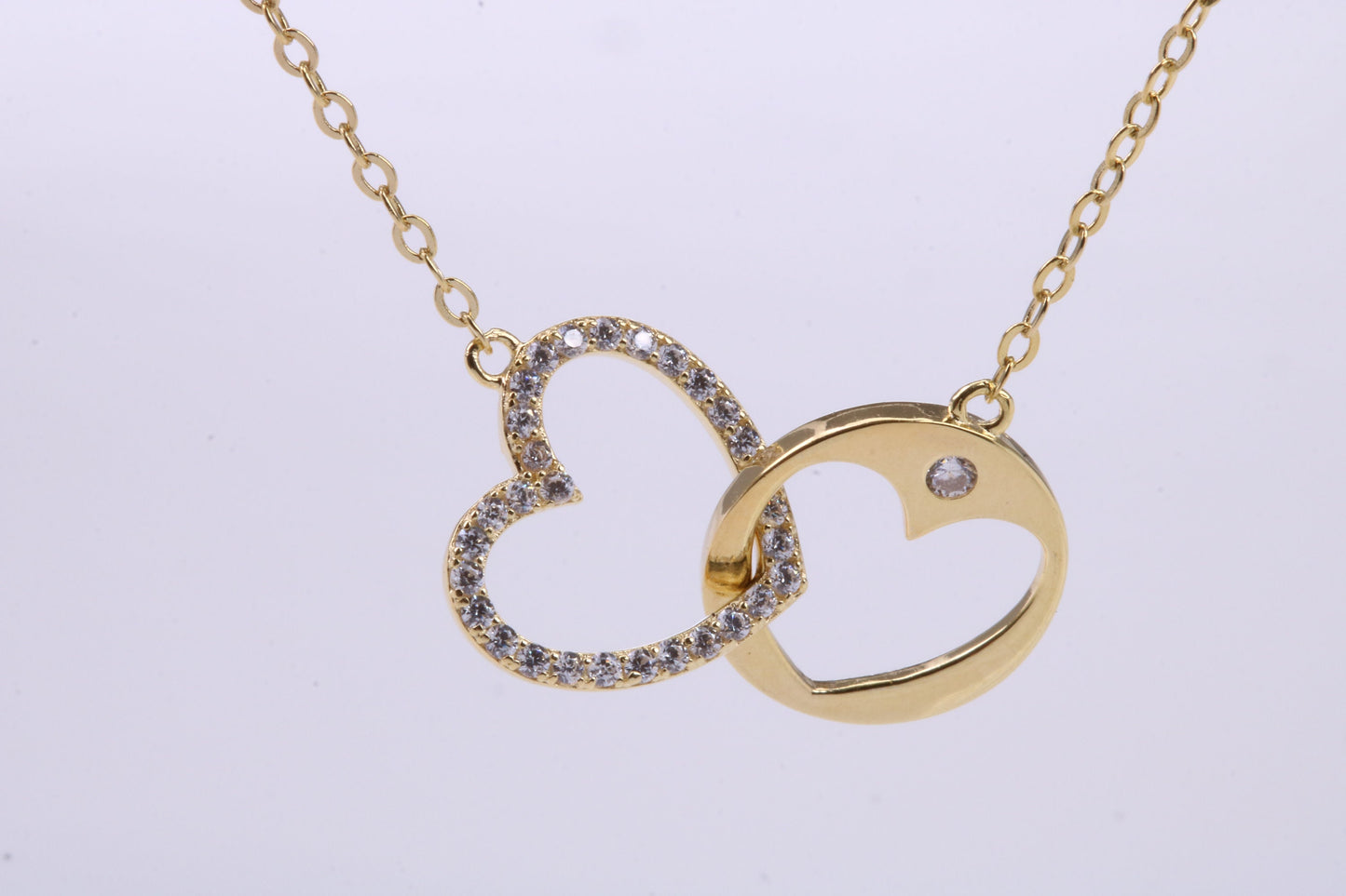Love Heart Cubic Zirconia set Necklace, made from solid Sterling Silver, 18ct Yellow Gold Plated
