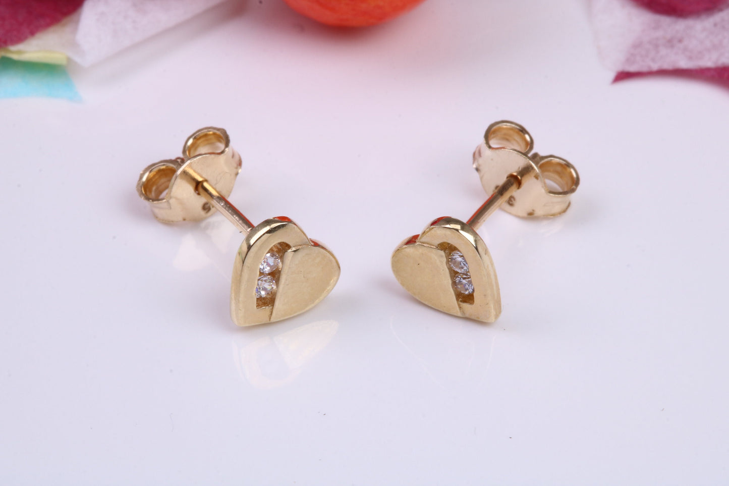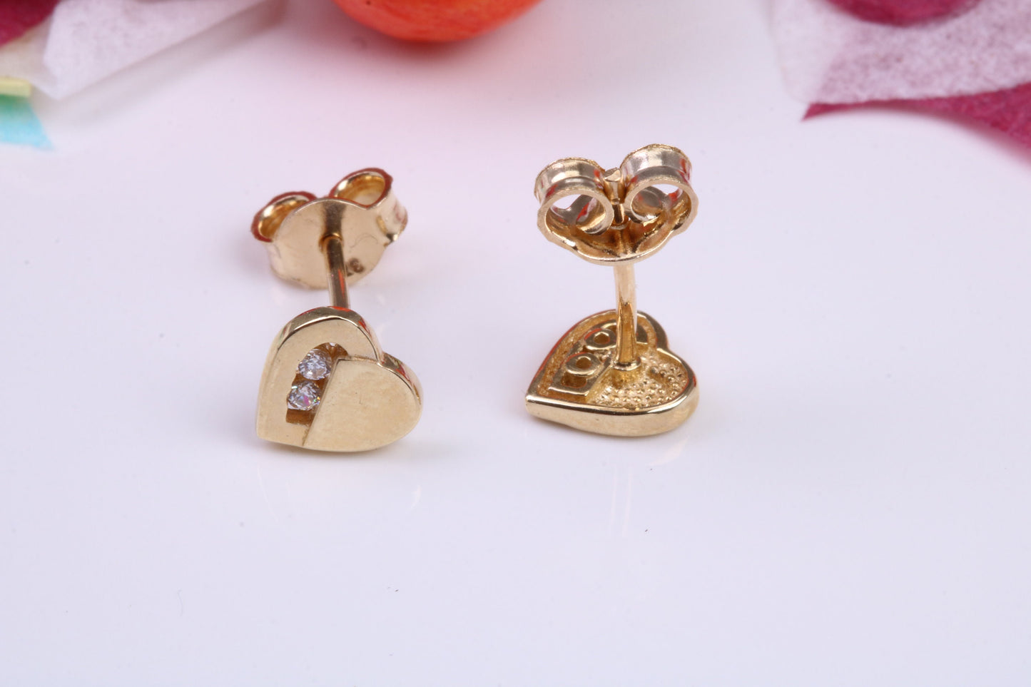 Love Heart Cubic Zirconia set Stud Earrings Made from 9ct Yellow Gold