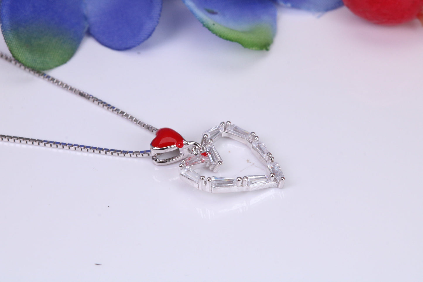 Love Heart Necklace, C Z set, Made From Solid Silver