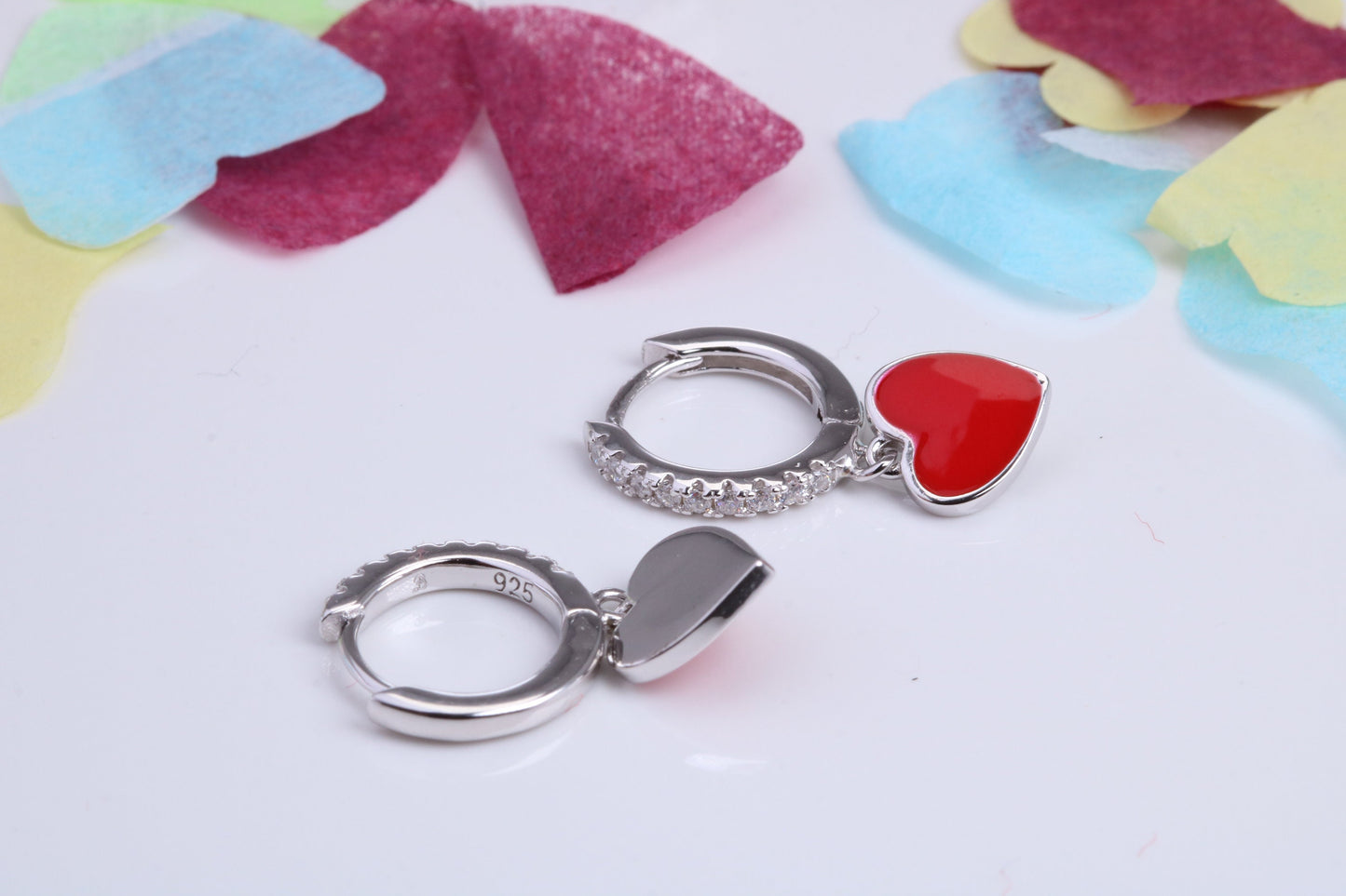 Love Hearts Dropper Hoop Earrings, Cubic Zirconia set, Made from Solid 925 Grade Sterling Silver