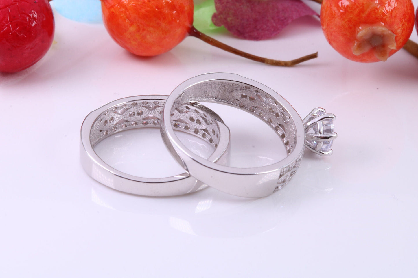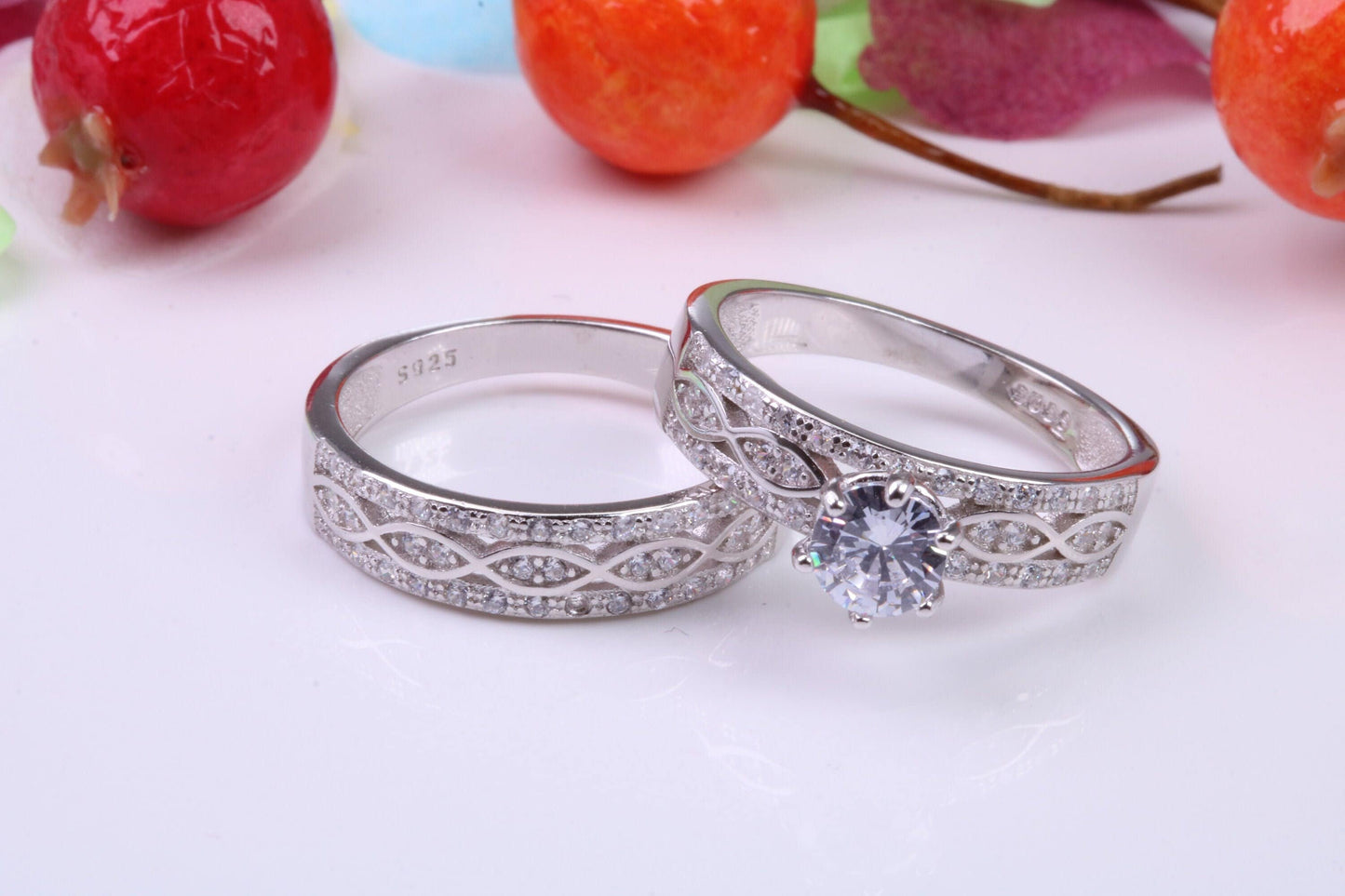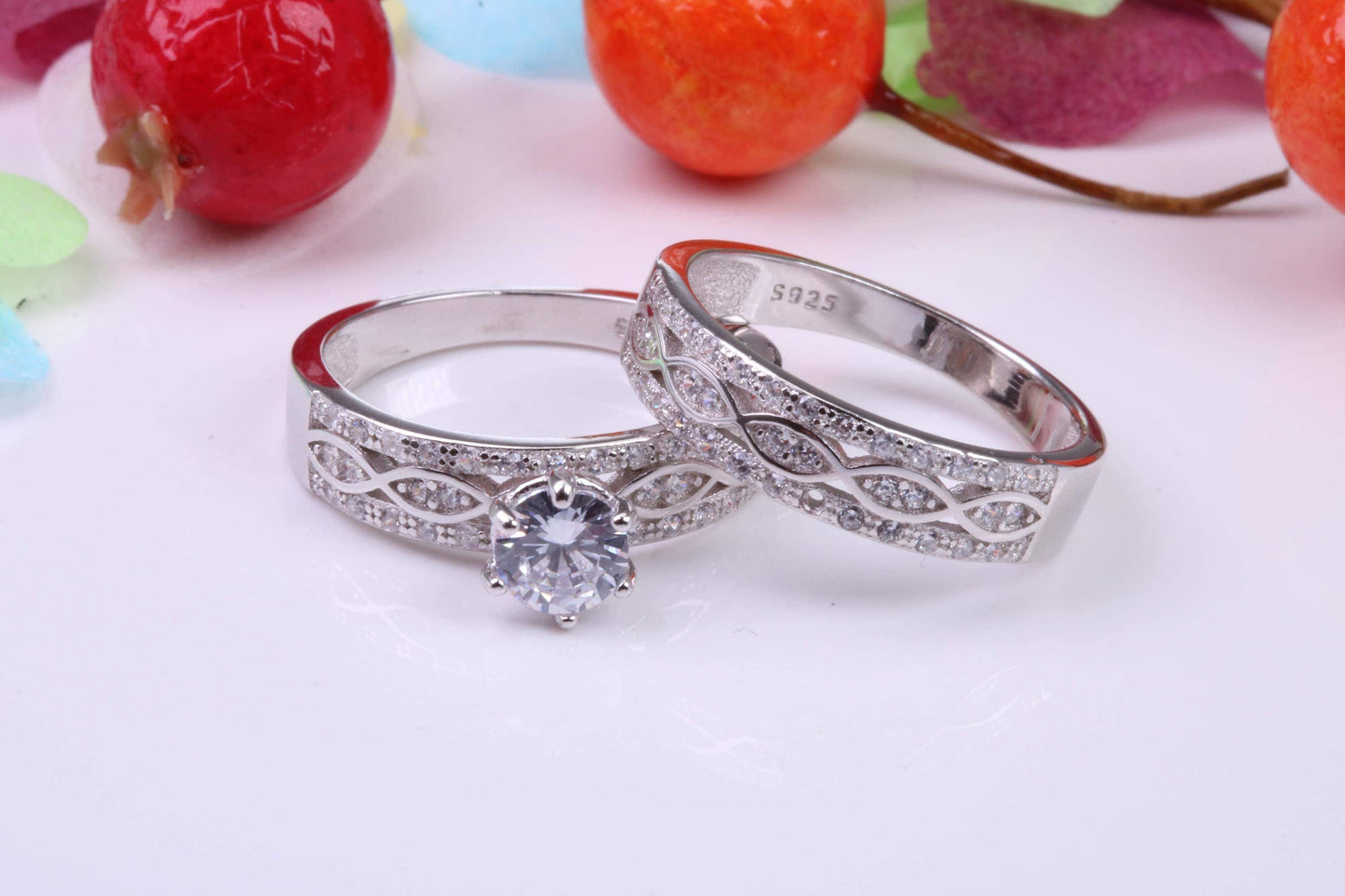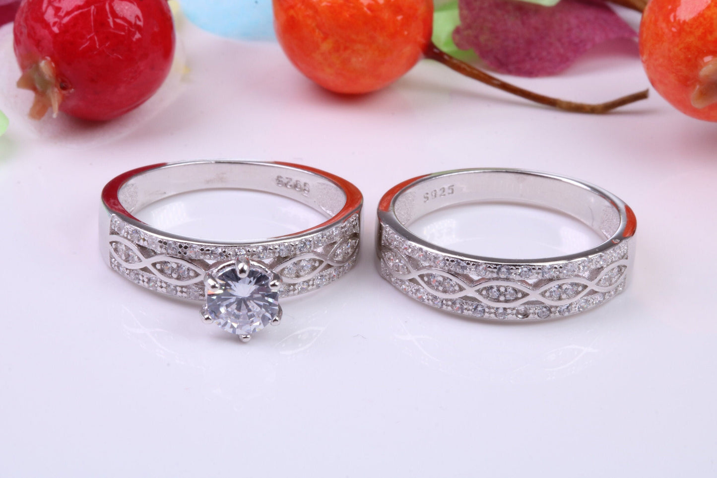Matching Engagement and Wedding Ring, Cubic Zirconia set Rings, Made from solid Silver