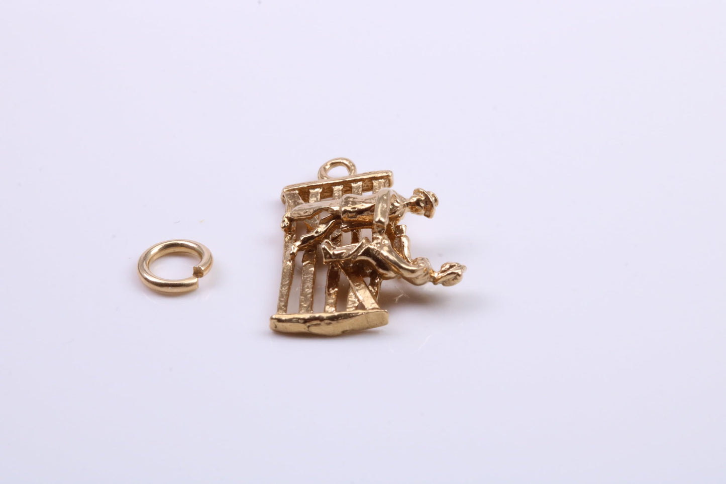 Natter by the Fence Charm, Traditional Charm, Made from Solid 9ct Yellow Gold, British Hallmarked, Complete with Attachment Link