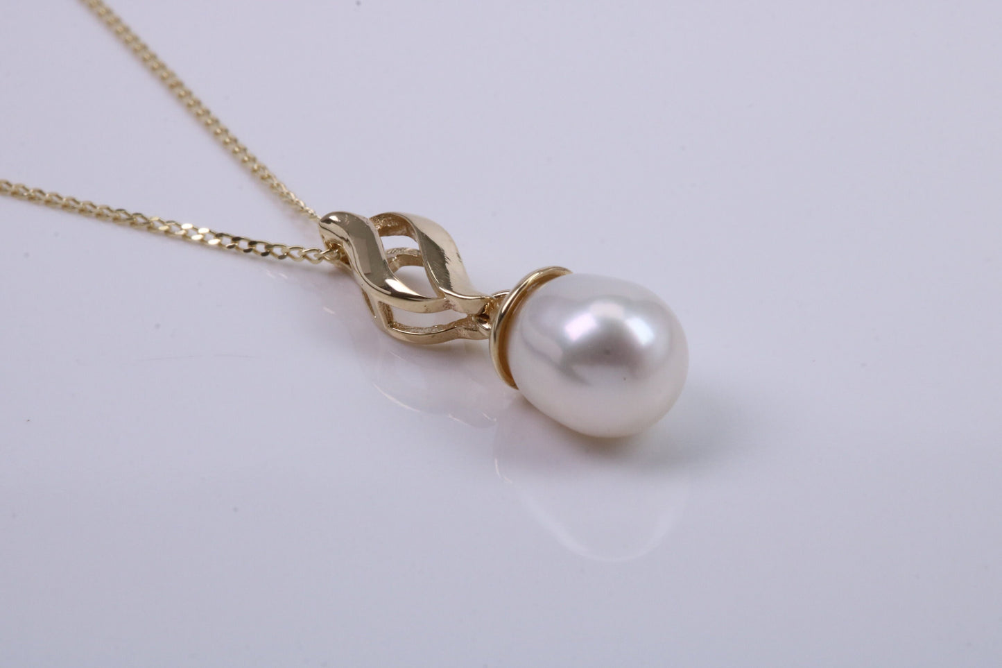 Natural Cultured Pearl Necklace set in Solid Yellow Gold Together with 18 Inch Yellow Gold Chain