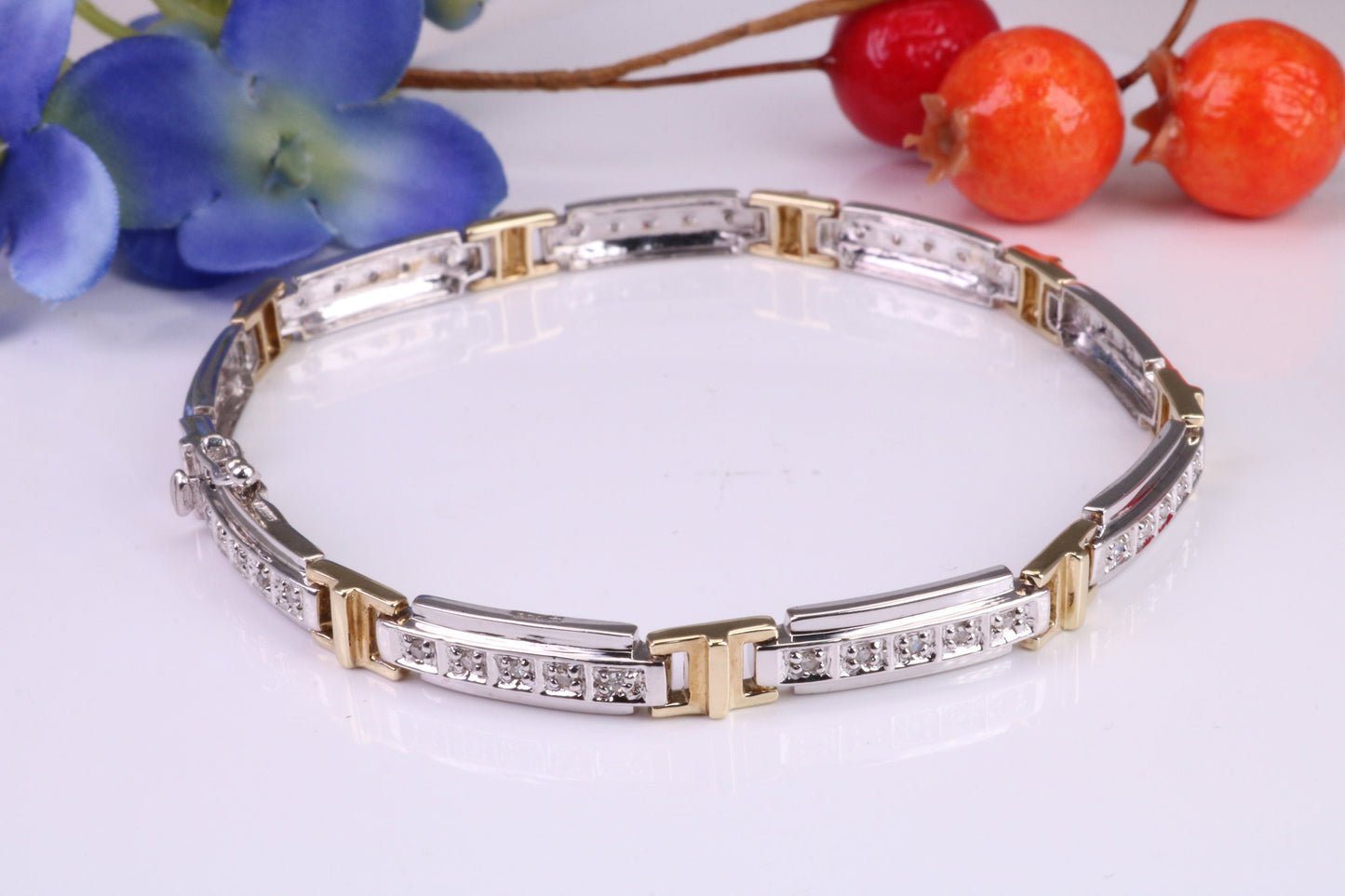 Natural Diamonds set Bracelet, Made From Solid Yellow and White Gold, British Hallmarked, Luxury Gift Boxed