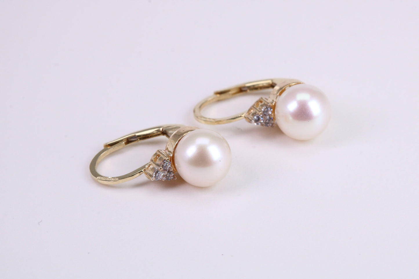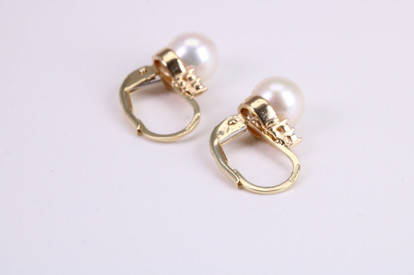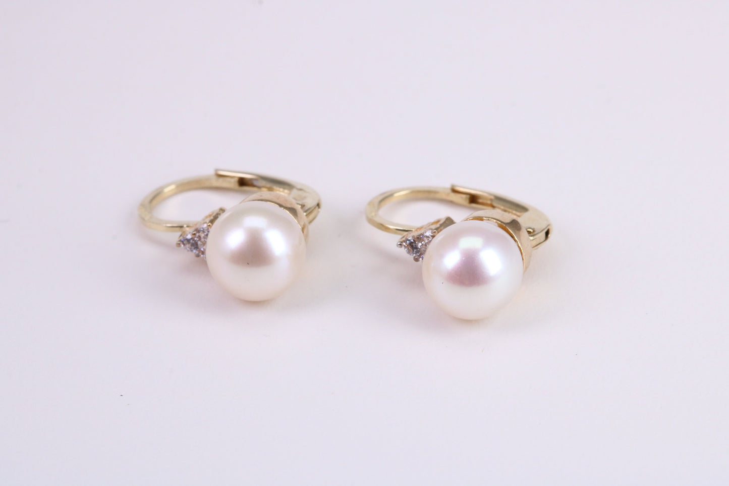 Natural Pearl Set Dropper Hoop Earrings set in Solid Yellow Gold