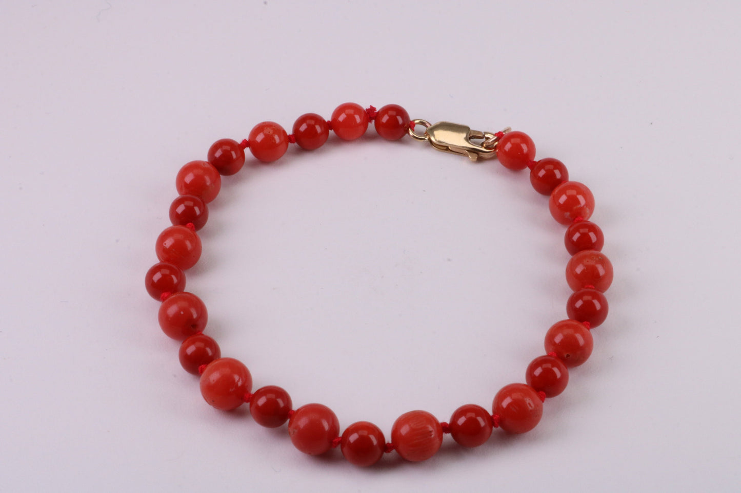 Natural Red Coral Bracelet with Solid Yellow Gold Lobster Claw Lock