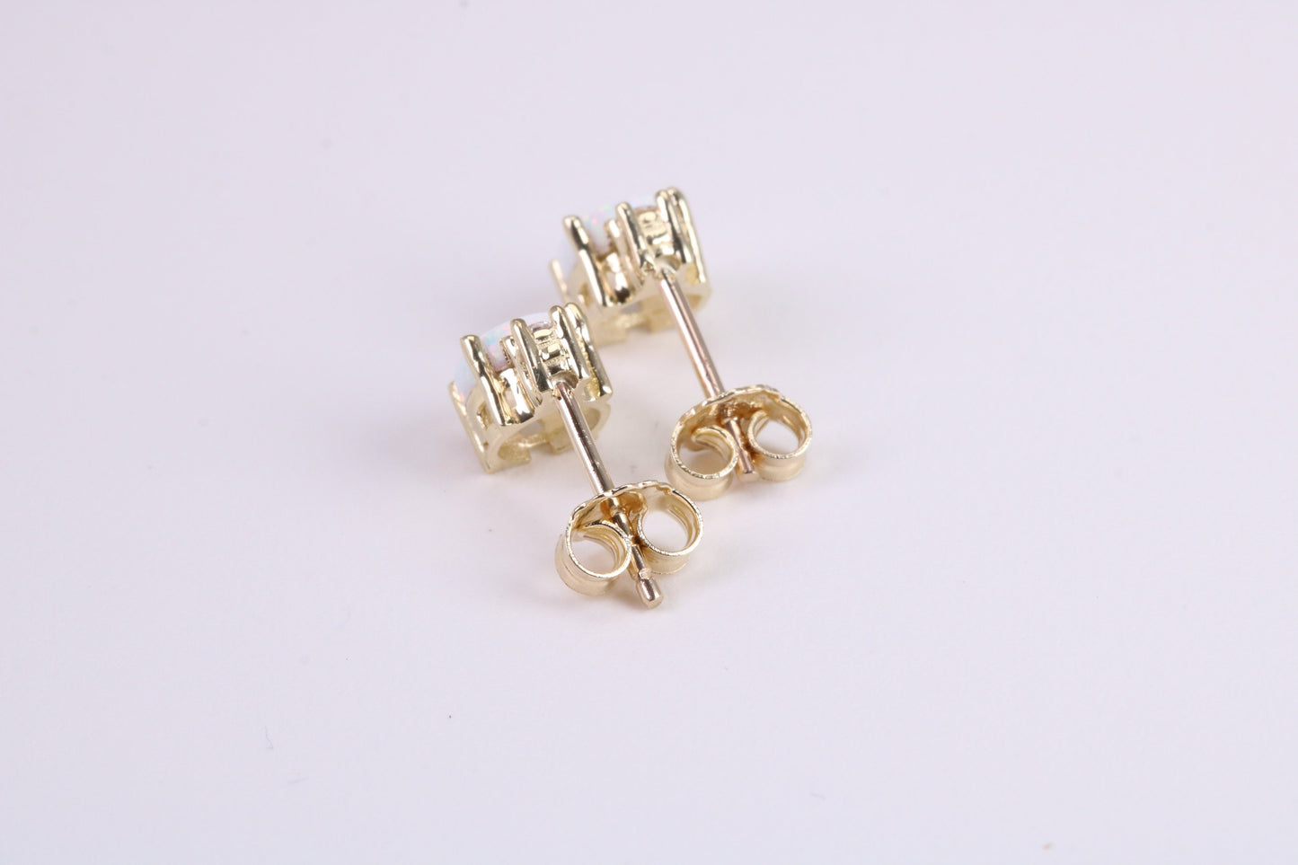 Natural Round cut Opal set and C Z set Stud Earrings Made from Solid Yellow Gold