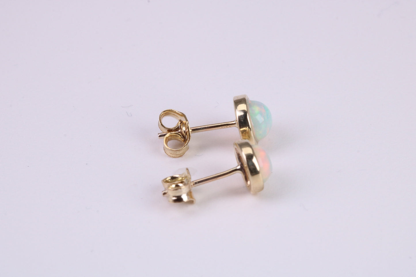 Natural Round cut Opal set Stud Earrings Made from Solid Yellow Gold
