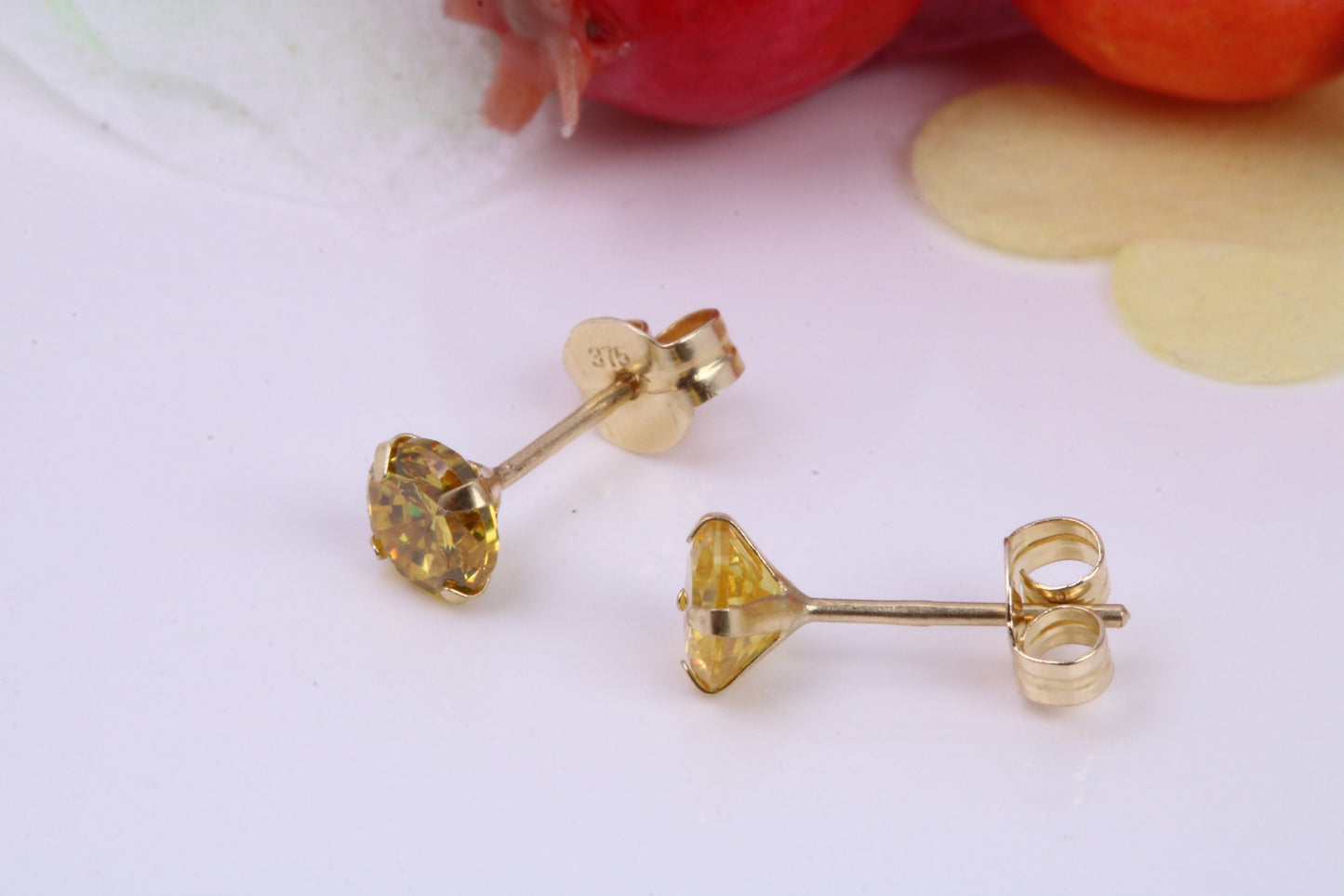 November Yellow Sapphire Cubic Zirconia set Birthstone Stud Earrings, Made from Solid 9ct Yellow Gold, Choice of Two Sizes