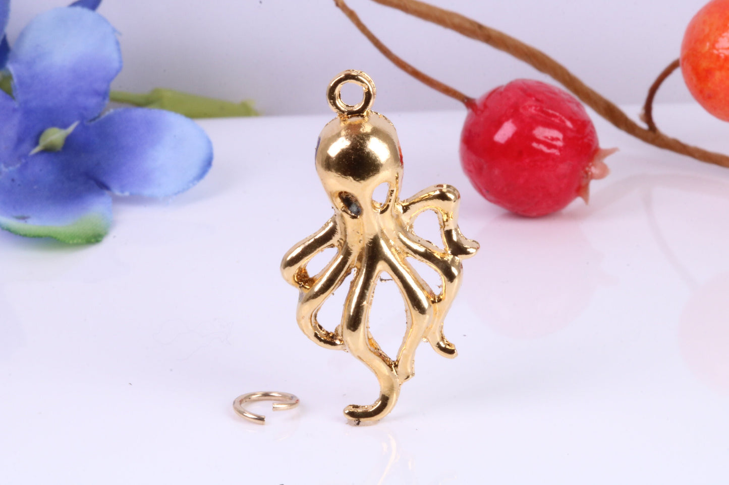 Octopus Charm, Traditional Charm, Made from Solid Cast Yellow Gold, British Hallmarked