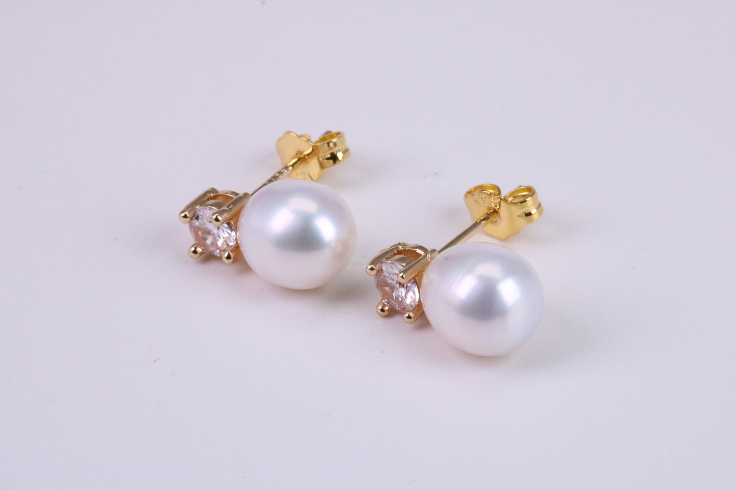 Oval Natural Freshwater Pearl and C Z set Stud Dropper Earrings set in Solid Silver and 18ct Yellow Gold Plated
