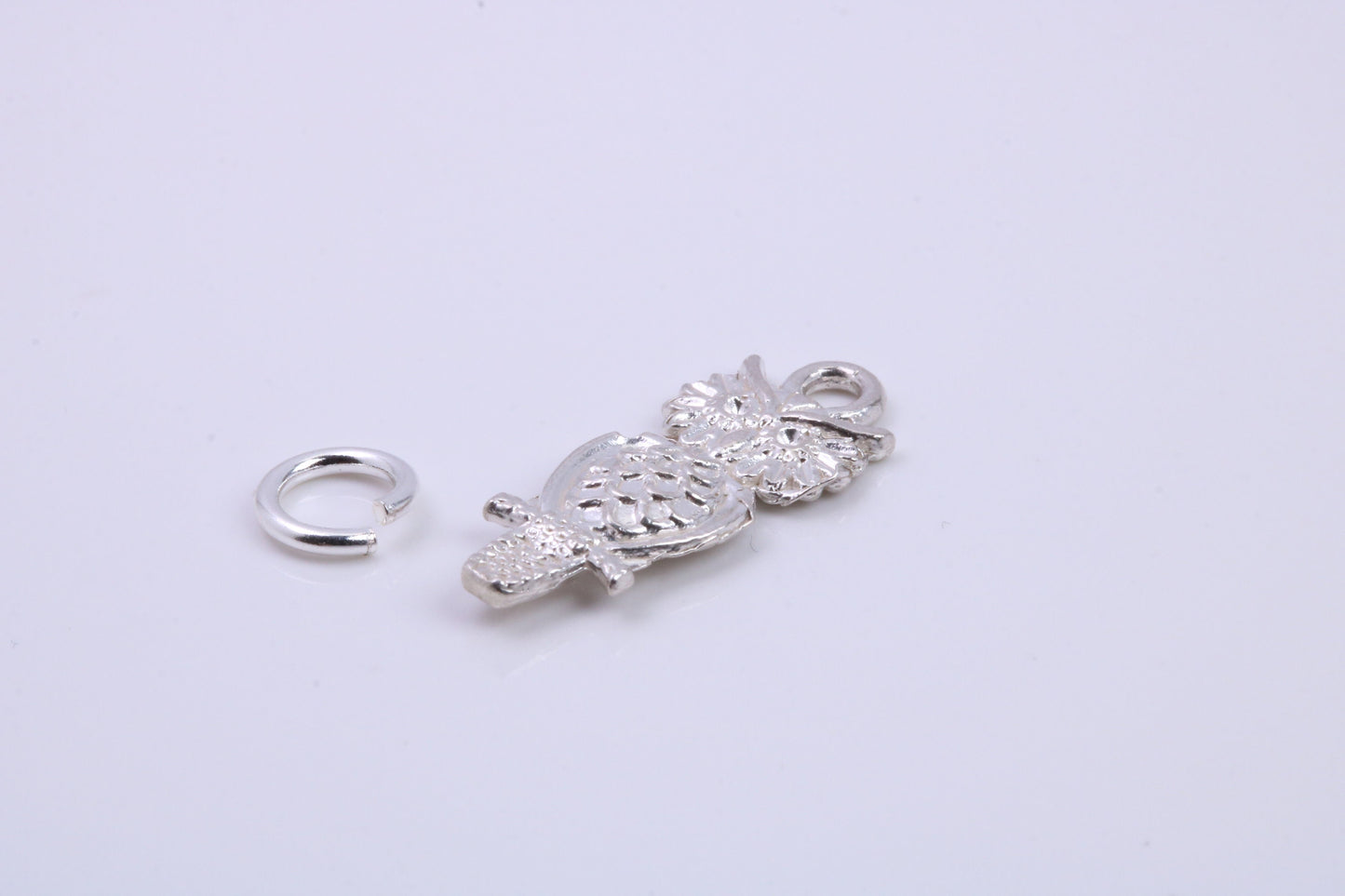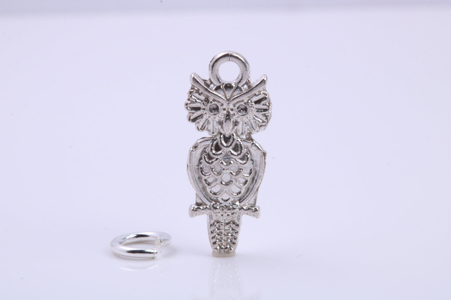 Owl Charm, Traditional Charm, Made from Solid 925 Grade Sterling Silver, Complete with Attachment Link