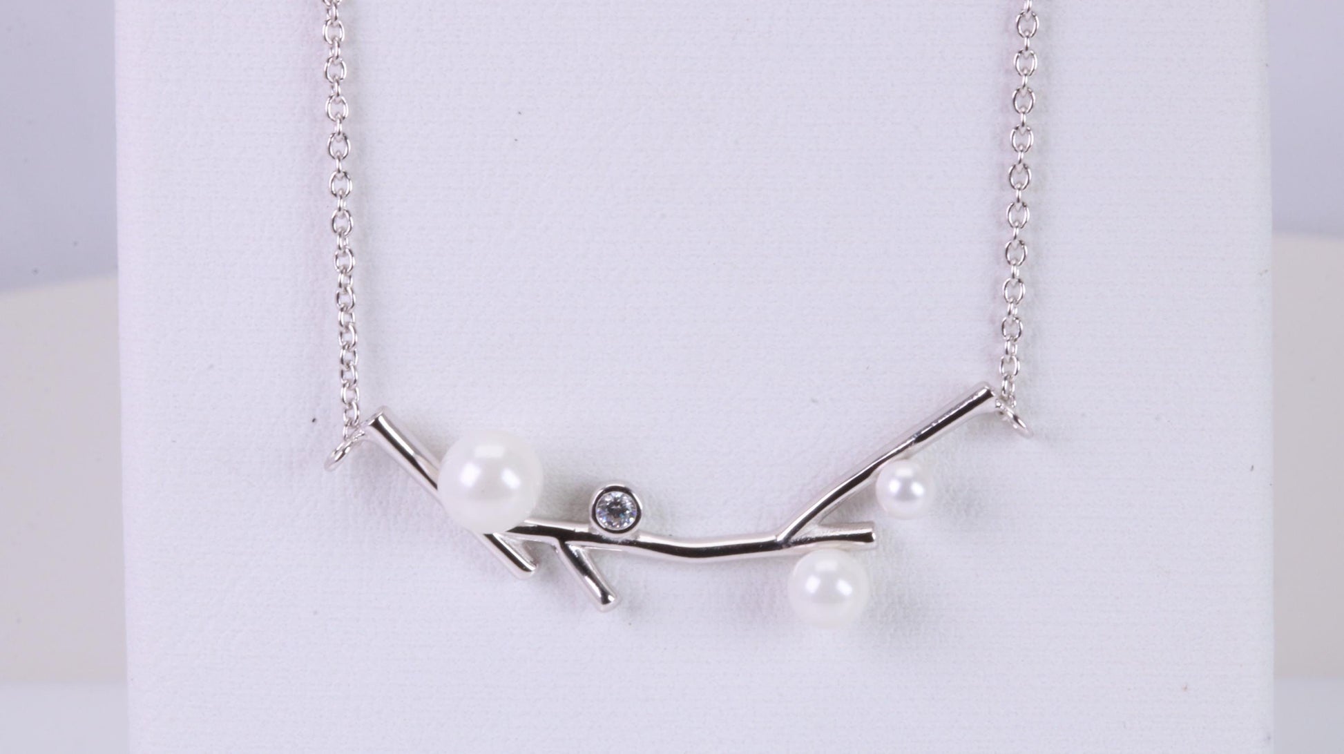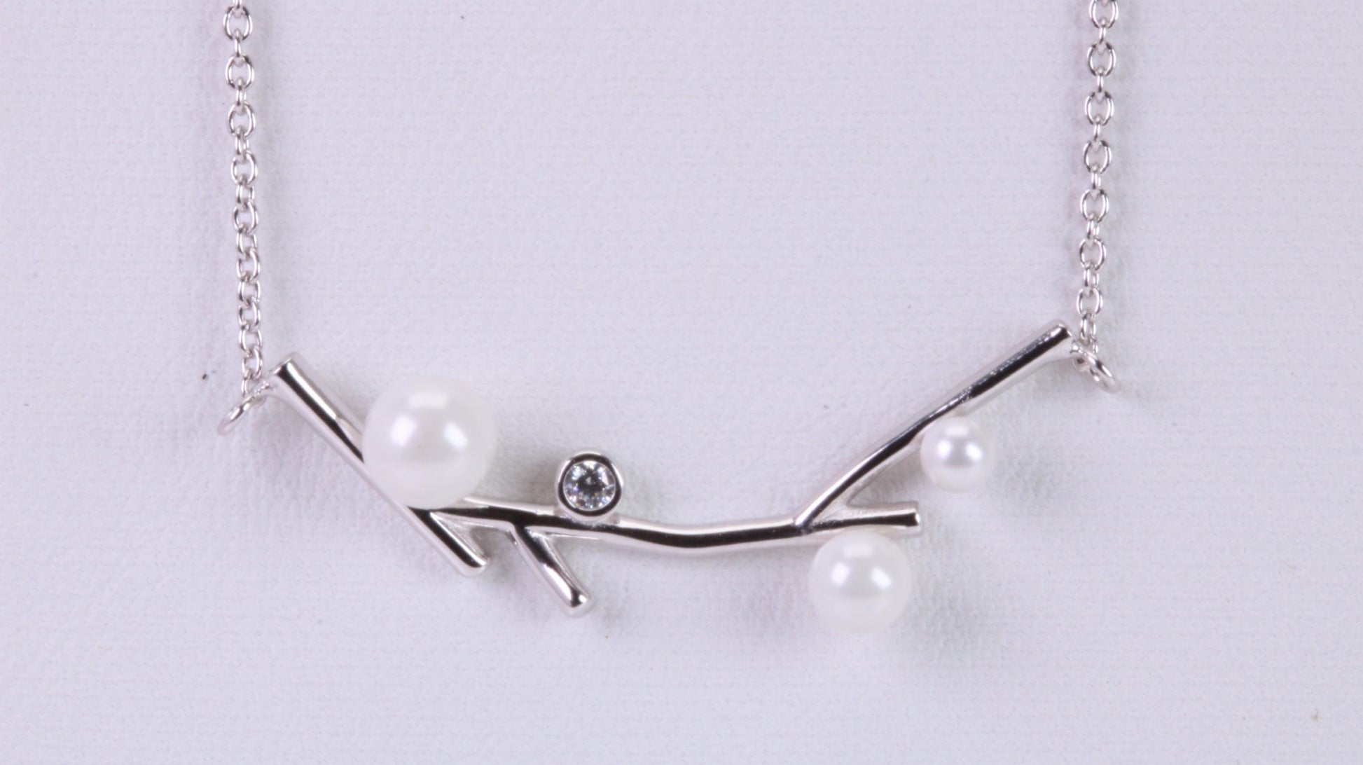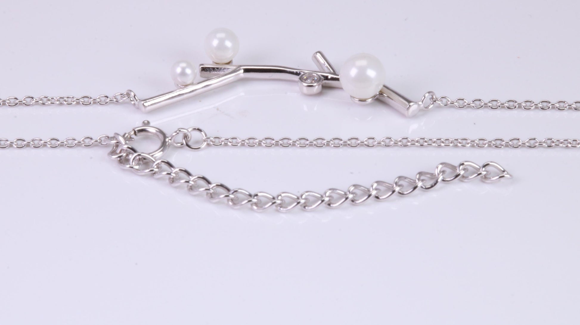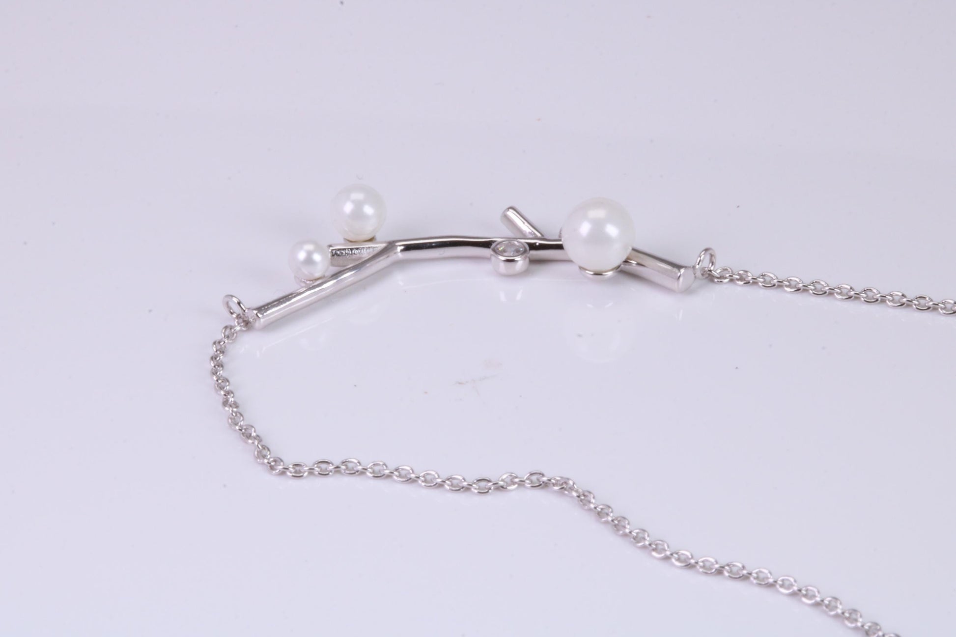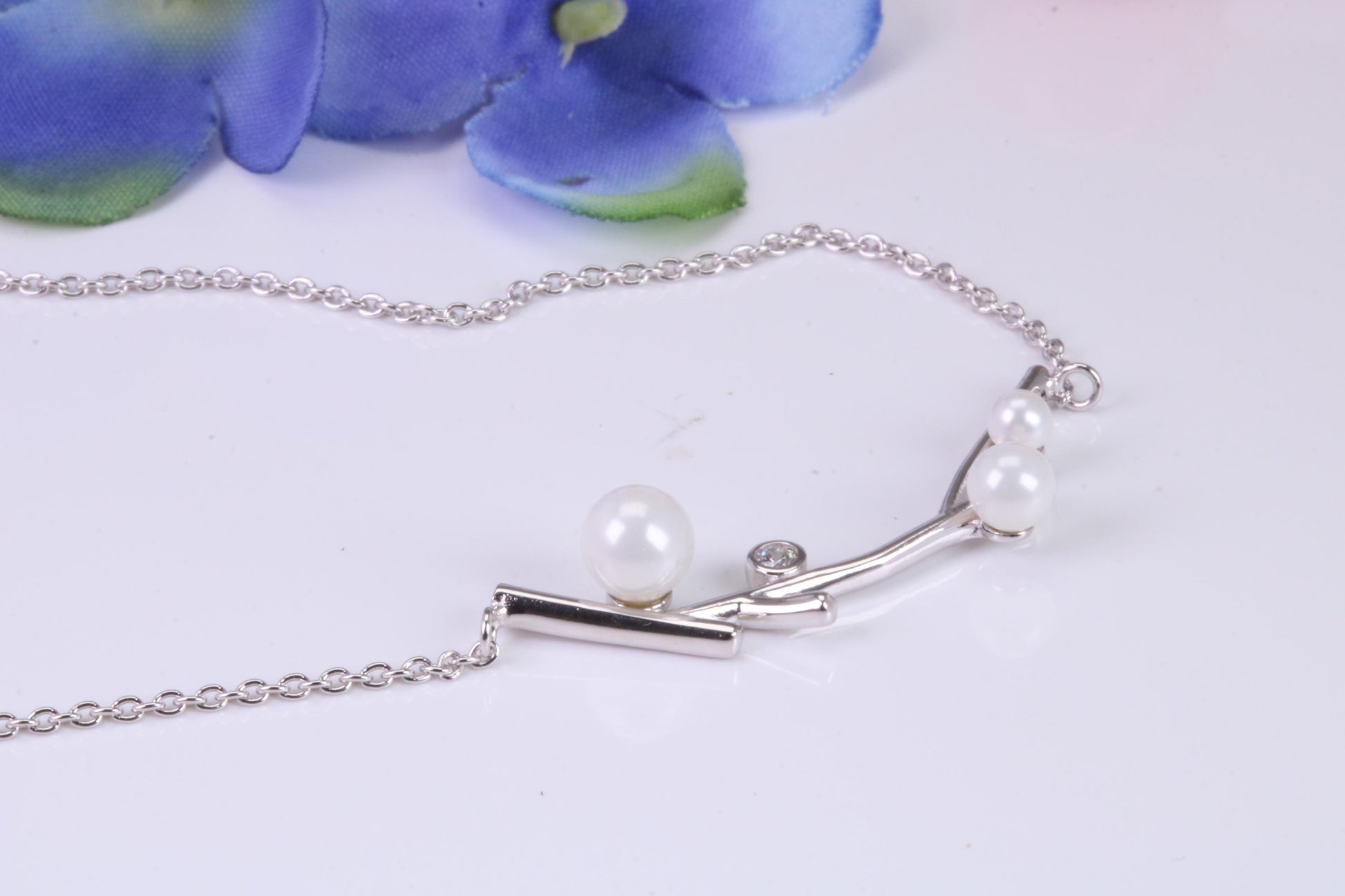Pearl and C Z set Necklace, With Length Adjustable Chain, Made from solid Sterling Silver