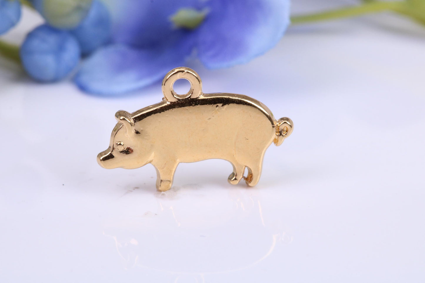 Pig Charm, Traditional Charm, Made from Solid Yellow Gold, British Hallmarked, Complete with Attachment Link