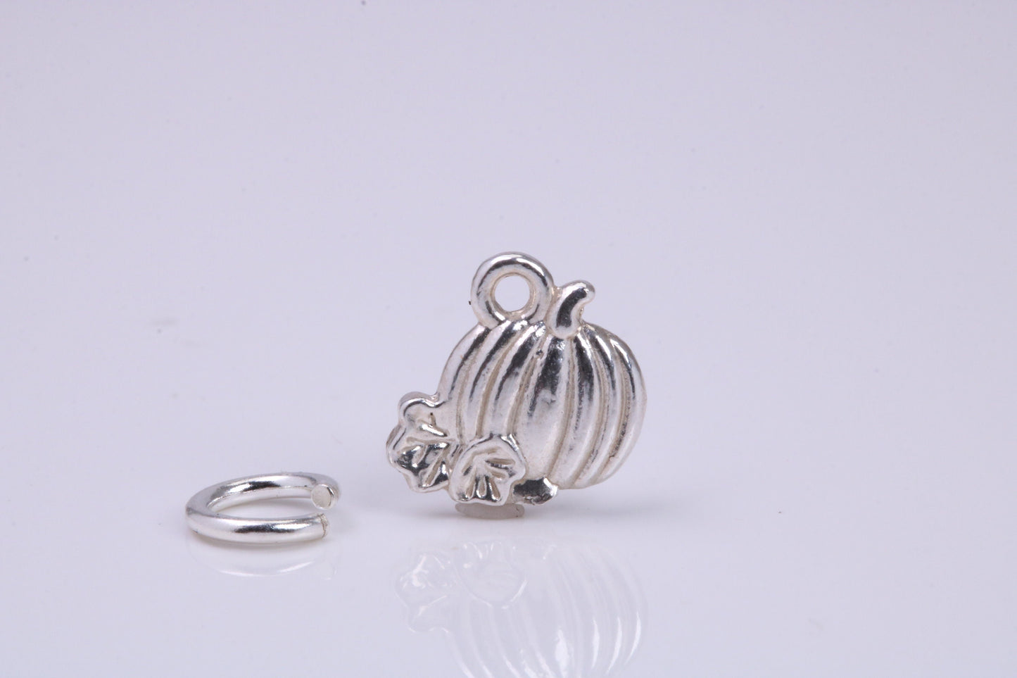 Pumpkin Charm, Traditional Charm, Made from Solid 925 Grade Sterling Silver, Complete with Attachment Link