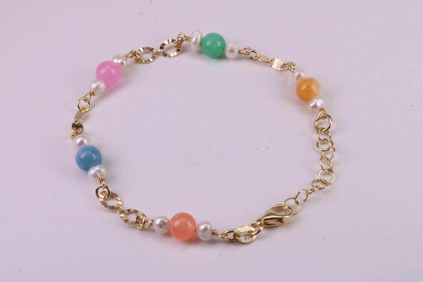 Rainbow Bracelet, With Length Adjustable Chain, Made from solid Sterling Silver and Further 18ct Yellow Gold Plated