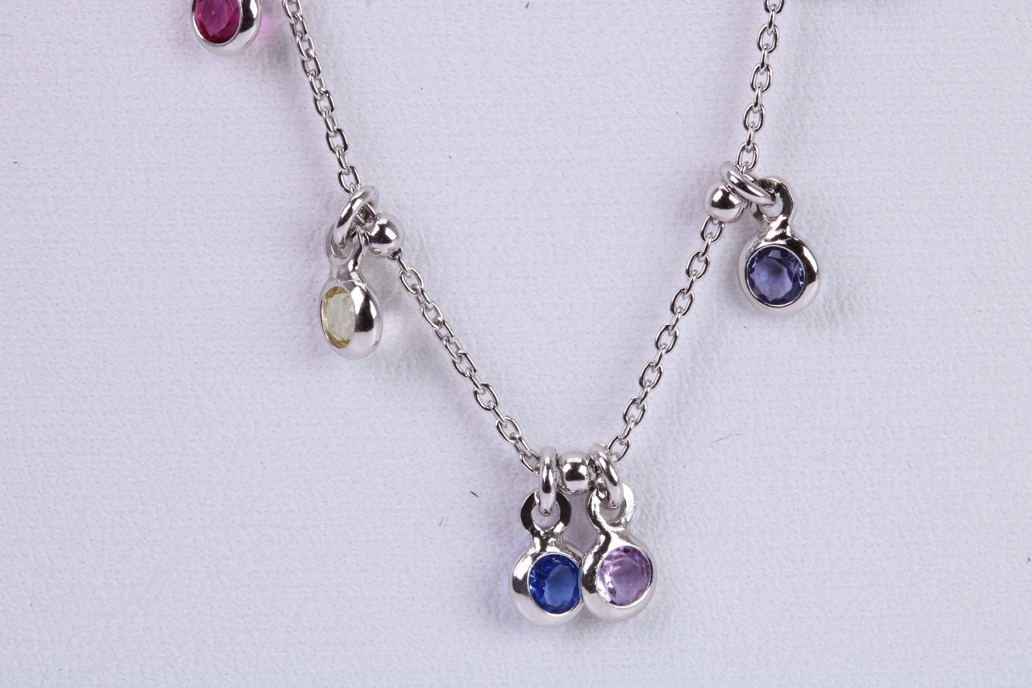 Rainbow Multi Coloured Cubic Zirconia set Necklace, made from solid Sterling Silver