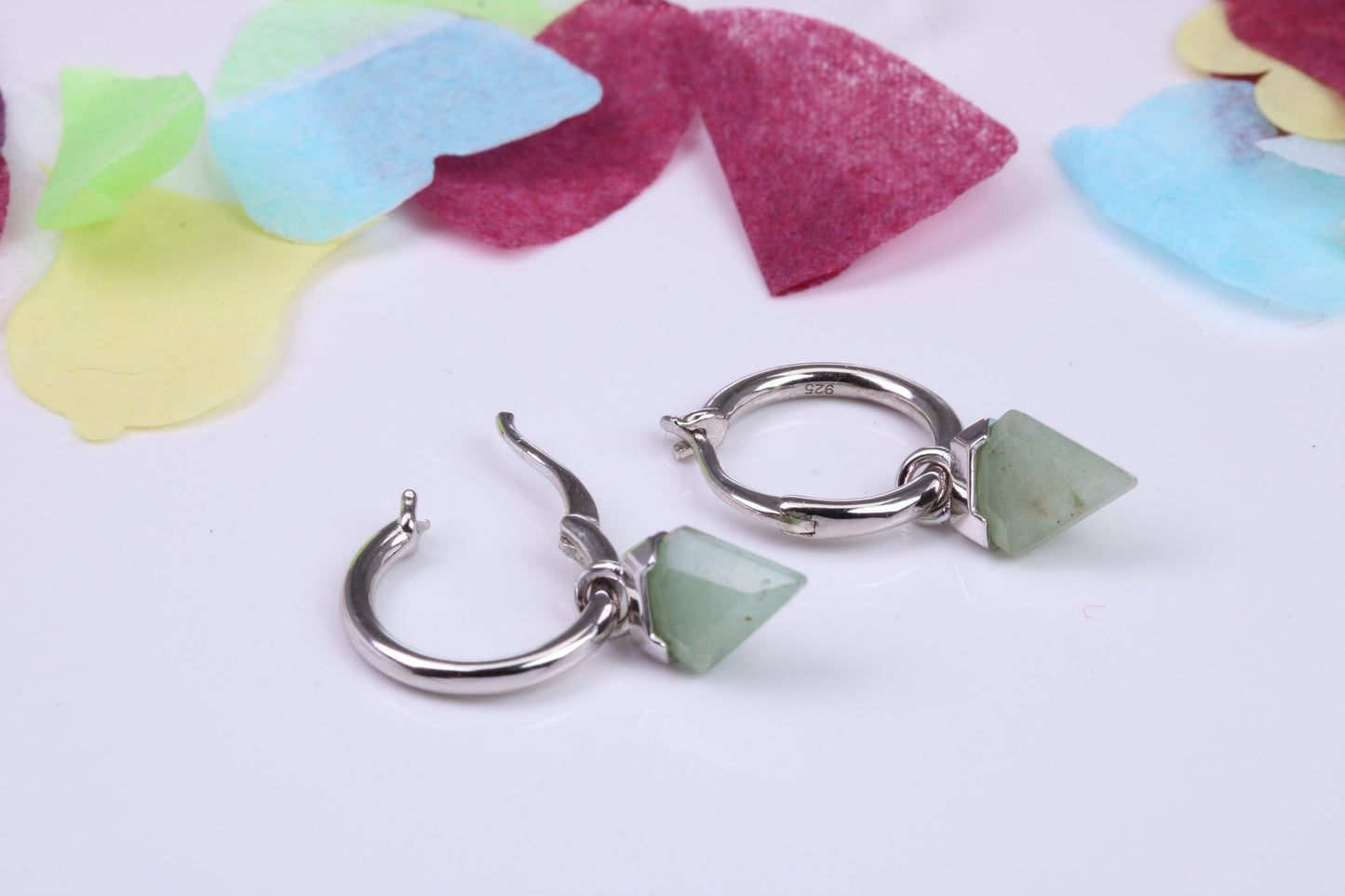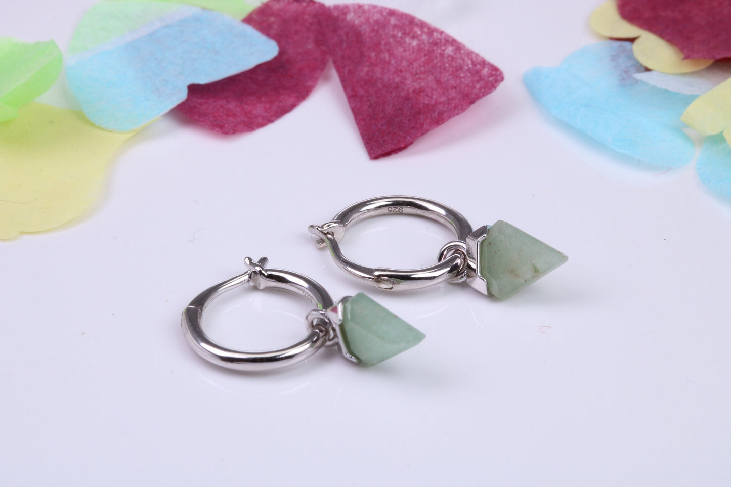 Real Emerald set Dropper Hoop Earrings, Cubic Zirconia set, Made from Solid 925 Grade Sterling Silver
