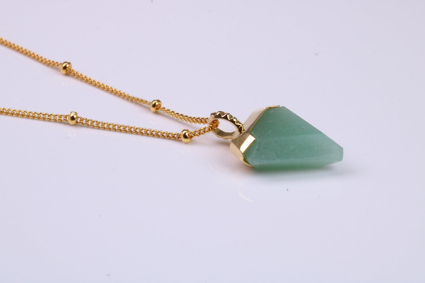 Real Emerald set Necklace, made from solid Sterling Silver with Length Adjustable Chain, 18ct Yellow Gold Plated