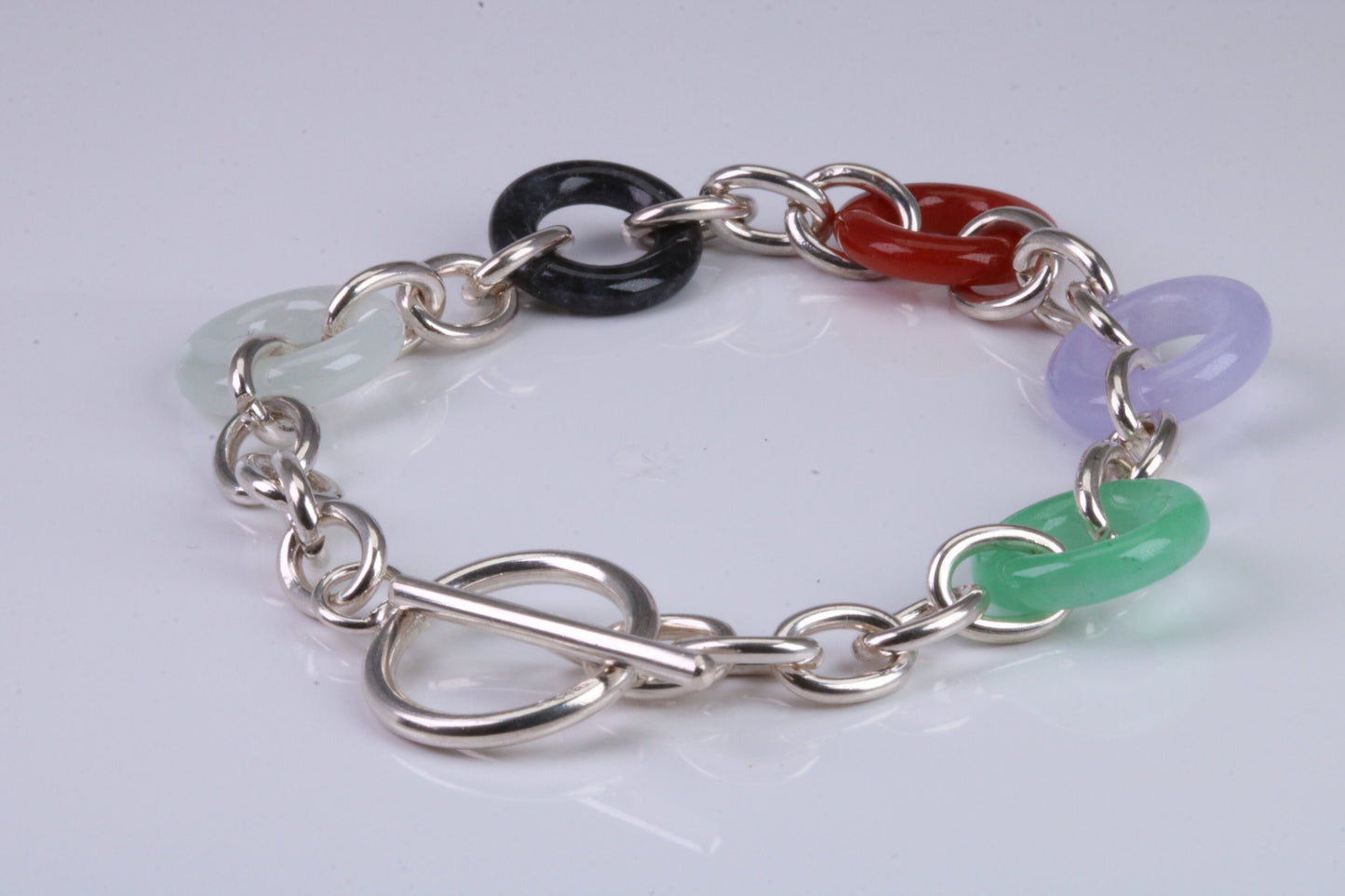 Real Multi Colour Jade set Bracelet, made from solid Sterling Silver, 7.50 Inches Long