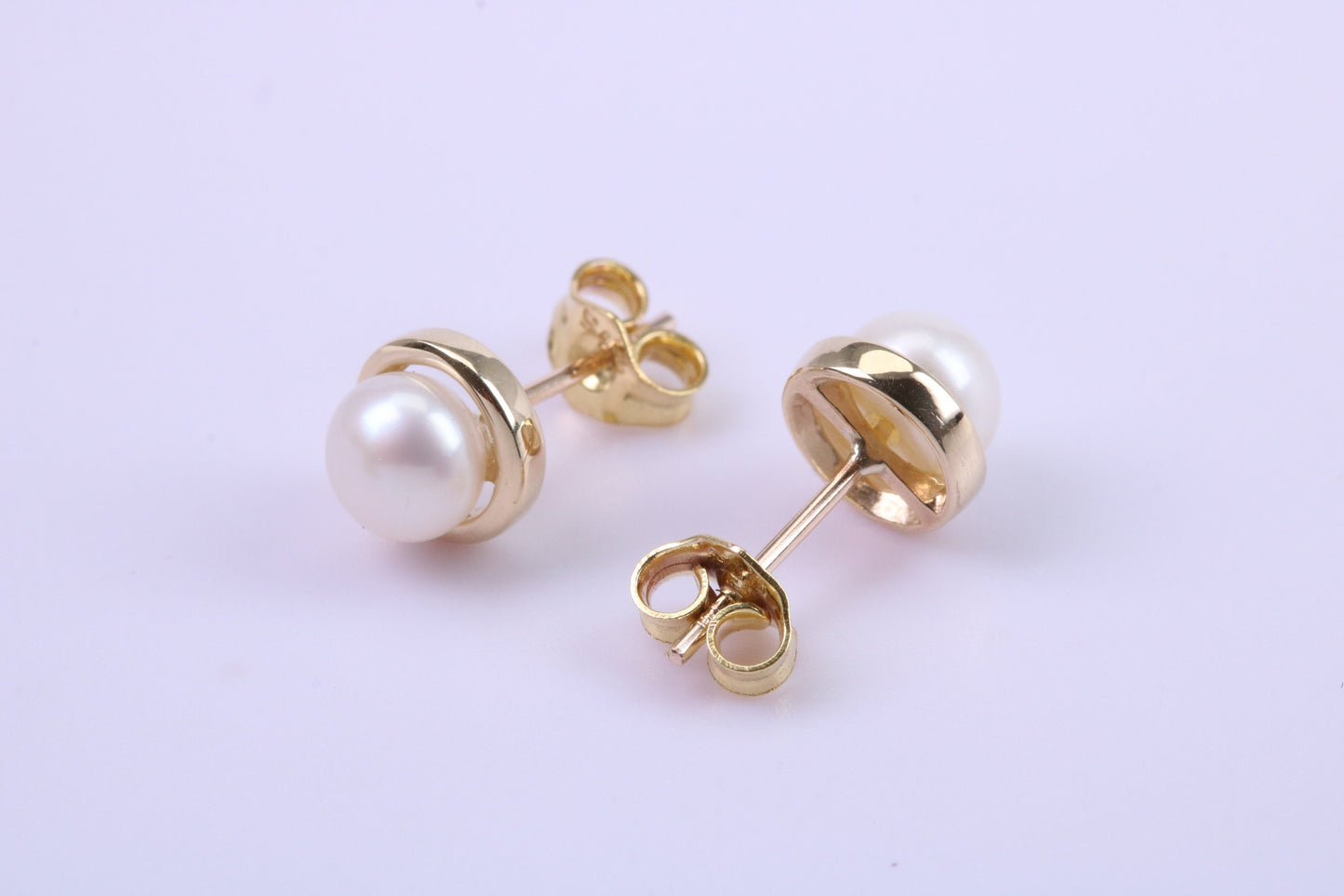 Real Pearl Necklace and Matching Earrings set in Solid Yellow Gold Together with 18 Inch Yellow Gold Chain