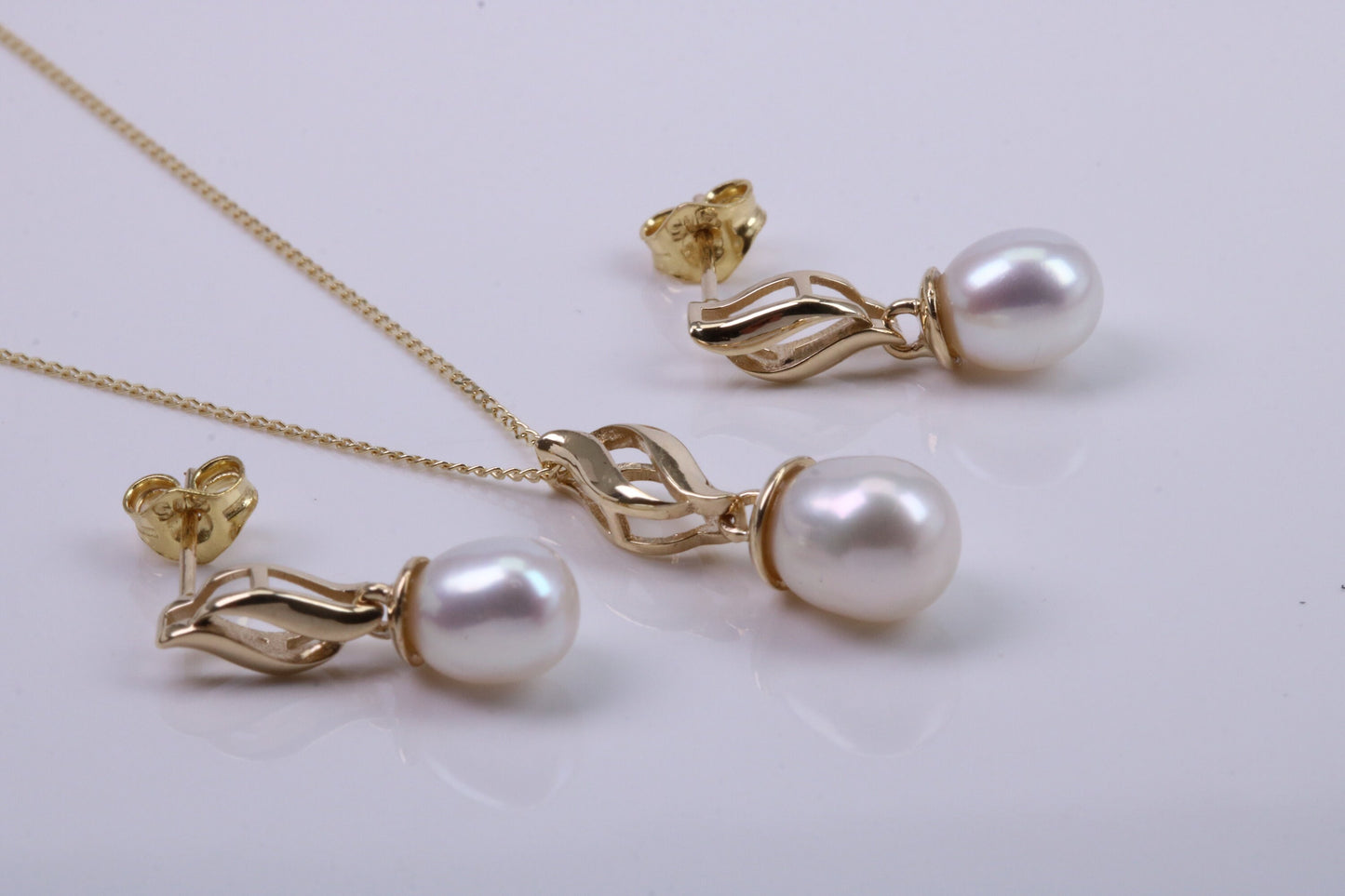 Teardrop Cultured Pearl set Necklace with matching Earrings