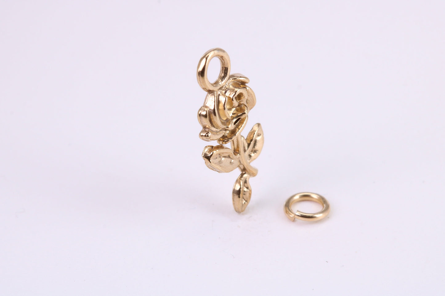 Rose Flower Charm, Traditional Charm, Made from Solid Yellow Gold, British Hallmarked, Complete with Attachment Link