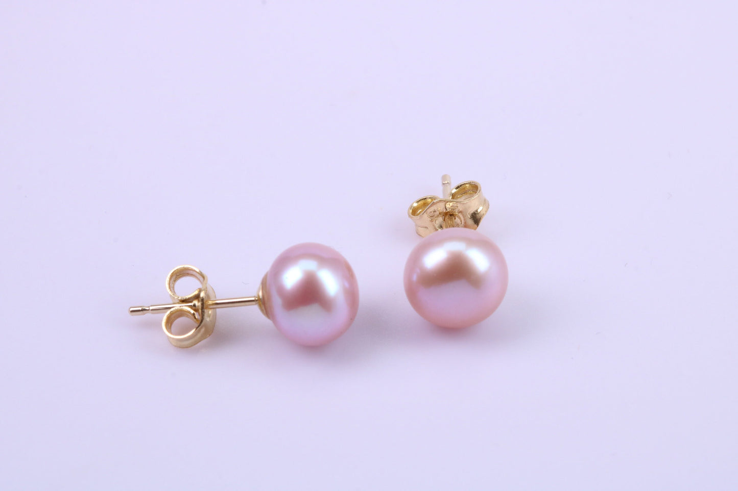 Round Natural Freshwater Pearl Stud Dropper Earrings set in Solid Yellow Gold