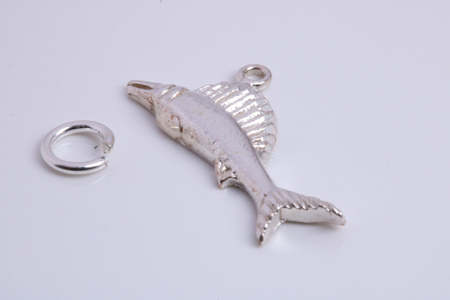 Sail Fish Charm, Traditional Charm, Made from Solid 925 Grade Sterling Silver, Complete with Attachment Link